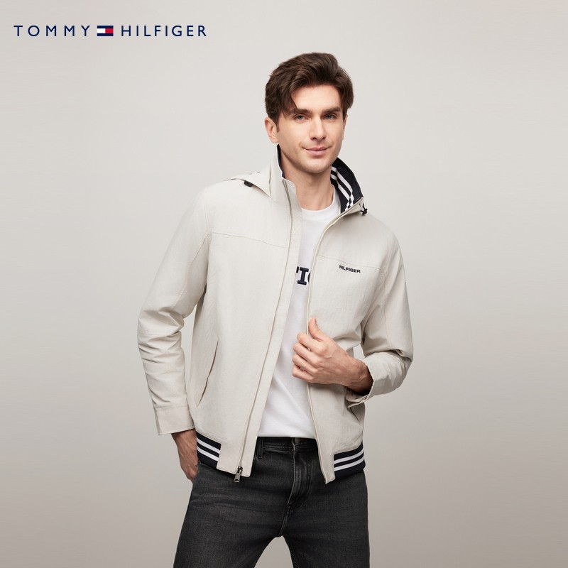 Tommy男装可收纳连帽立领单夹克