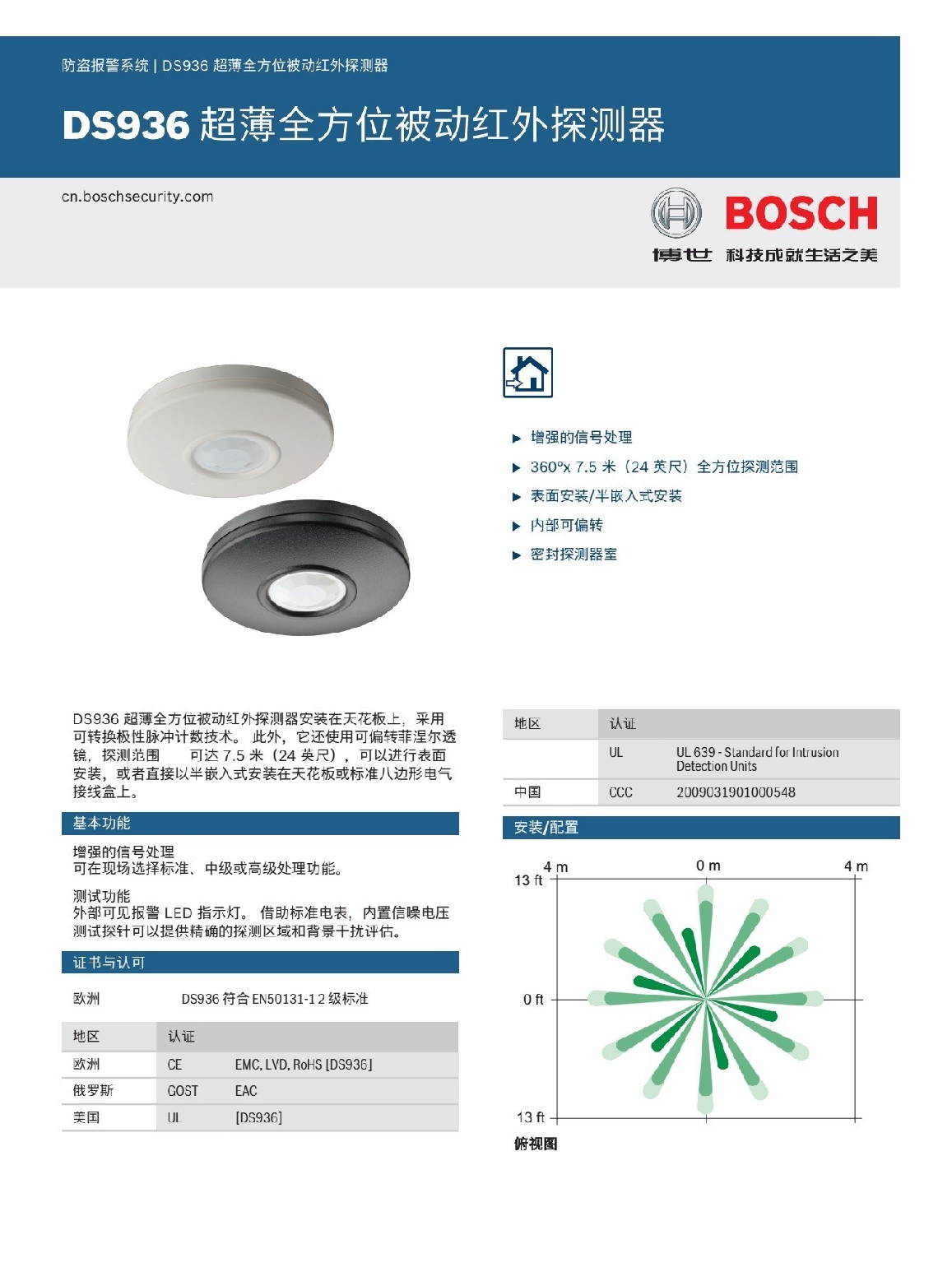 博世DS936-CHI吸顶式被动红外探测器室内有线探头防盗报警器