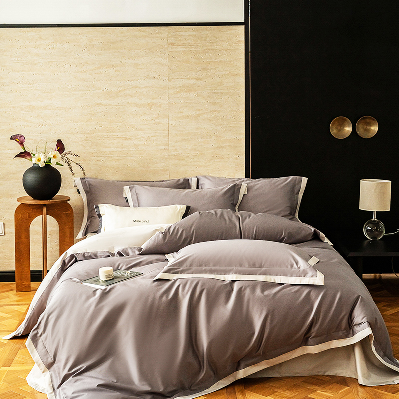 欧式简约100支长绒棉纯色双拼四件套全棉纯棉套件男双人床上用品