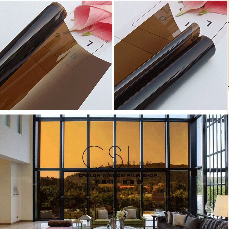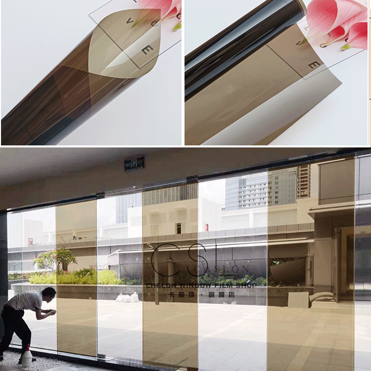 茶色透明玻璃贴膜遮光防晒隔热太阳膜窗户阳台移门咖啡色装饰贴纸