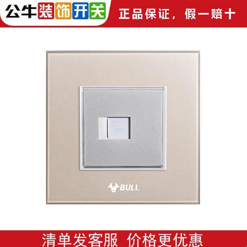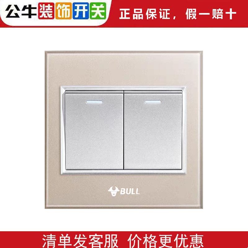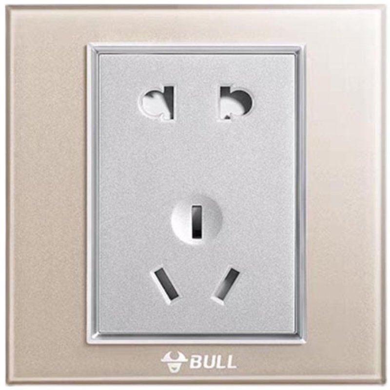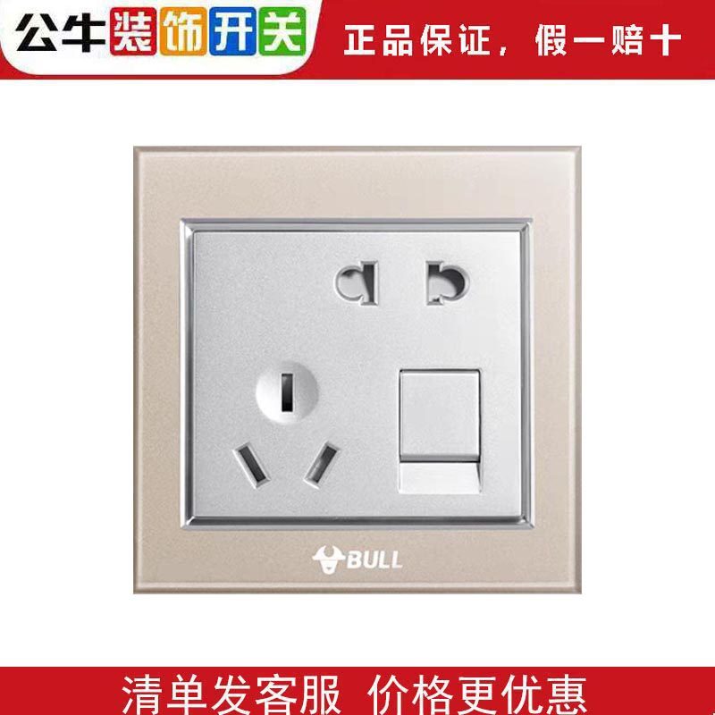 公牛开关G22高晶钢化玻璃面板五孔5孔暗装家用香槟金插座