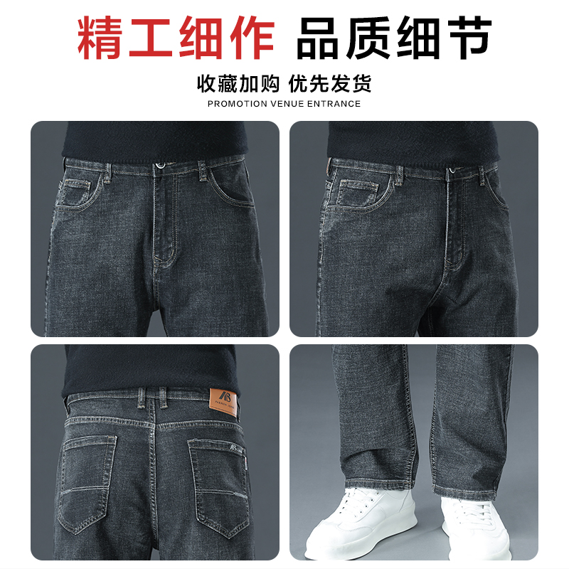 法国高端阔腿牛仔裤男士直筒宽松2025秋季新款中年爸爸休闲裤子