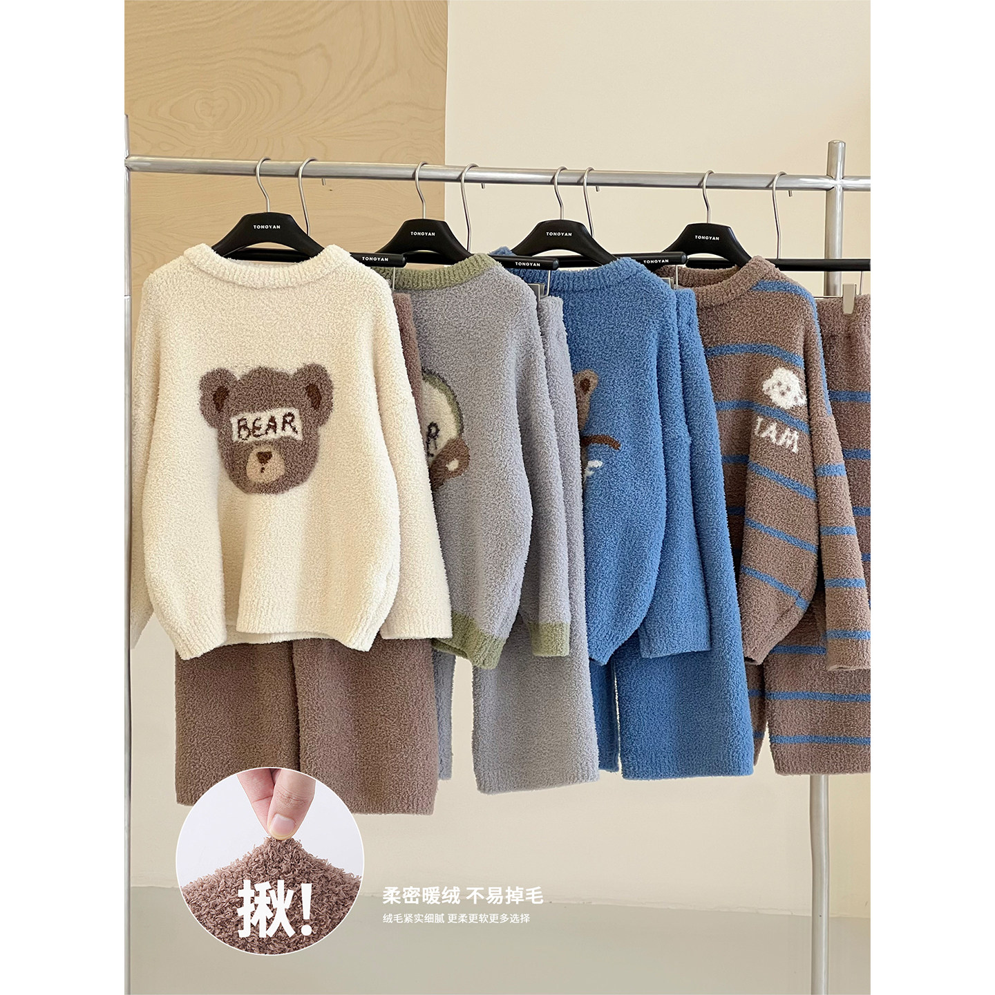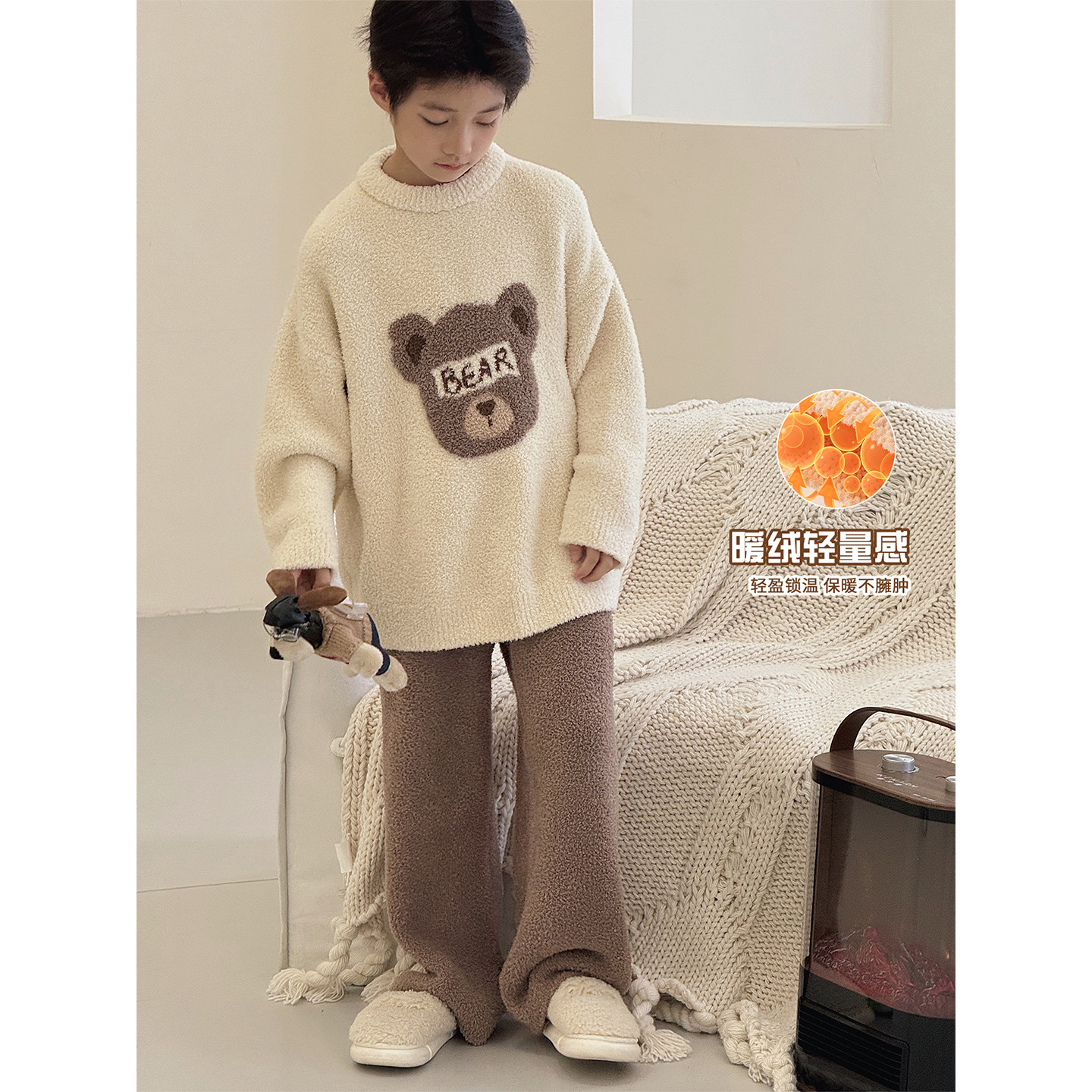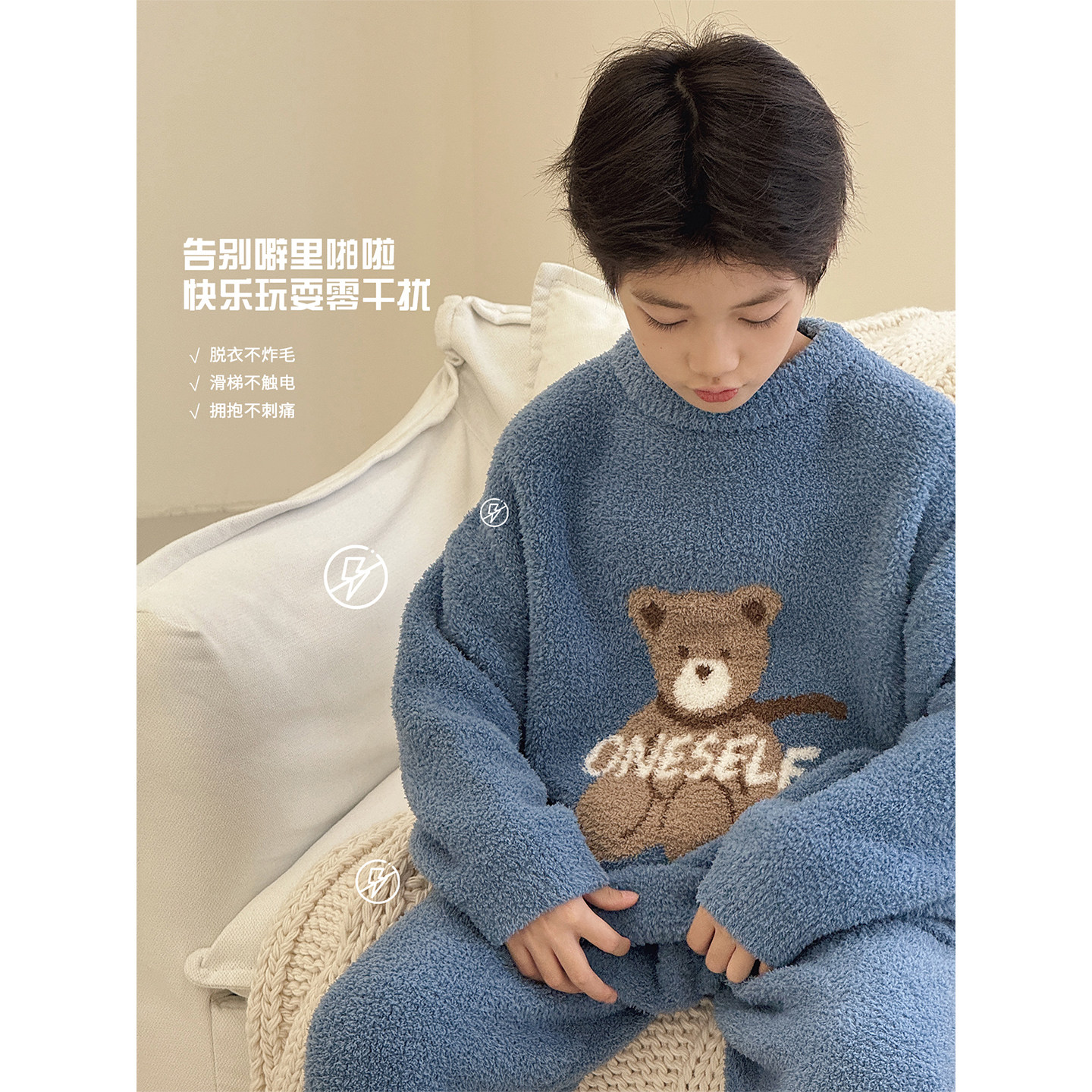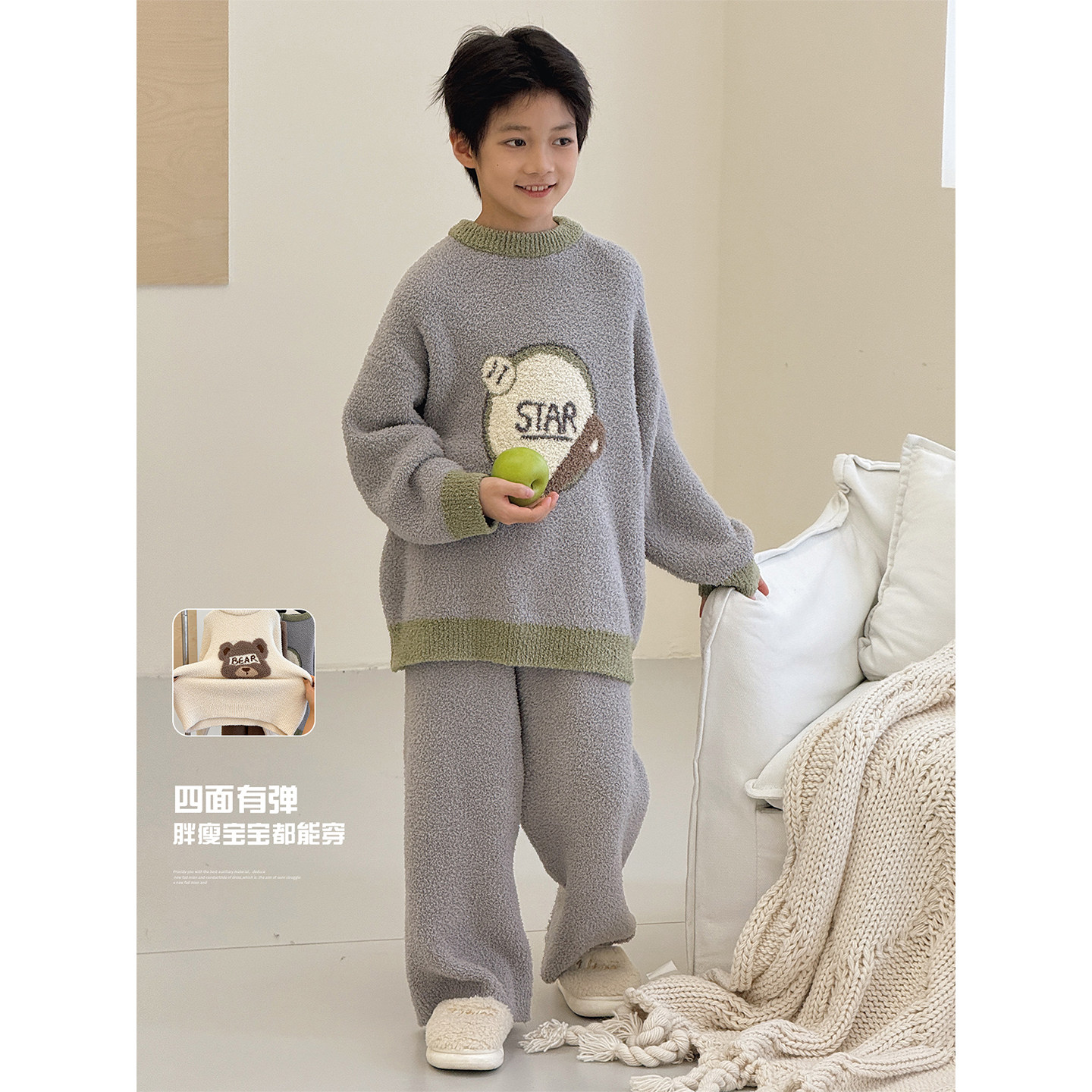 儿童睡衣冬装新款男童半边绒家居服中大童保暖套装宝宝加厚两件套