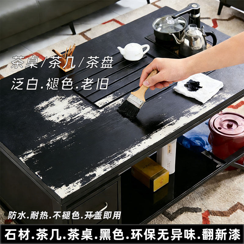 办公室黑色茶几老旧褪色掉漆翻新改色漆石材火烧石乌金石桌染色剂