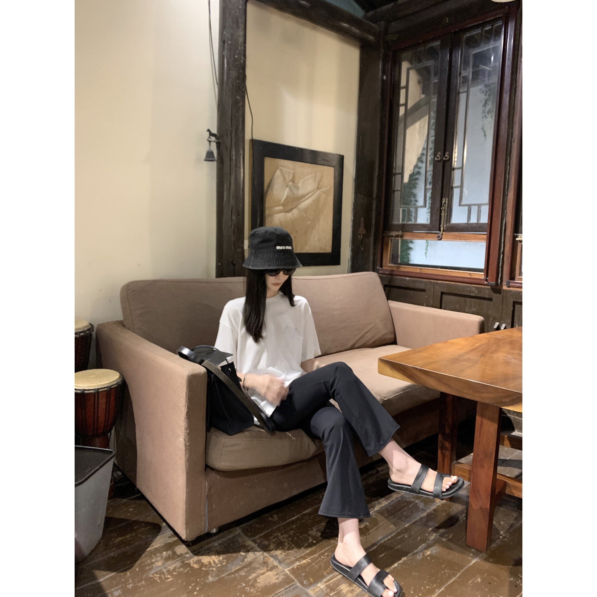大小姐77 人手B入!chao好穿系列巨显腿细9分黑色瑜伽喇叭裤