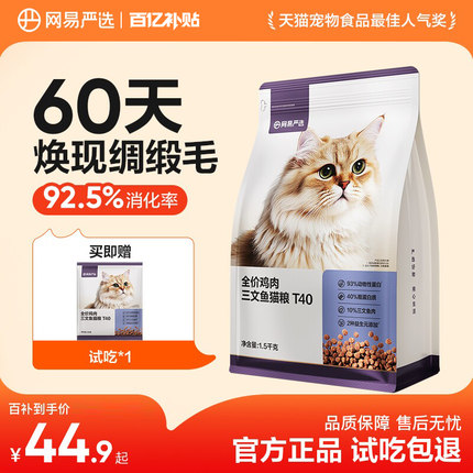 【百亿补贴】网易严选新品T40 全价鸡肉三文鱼猫粮成猫美毛主食猫