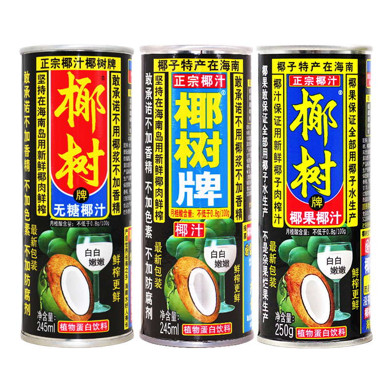 海南椰树牌椰汁椰果椰汁 无糖椰子汁饮料245ml*24罐整箱生榨椰奶