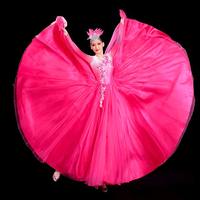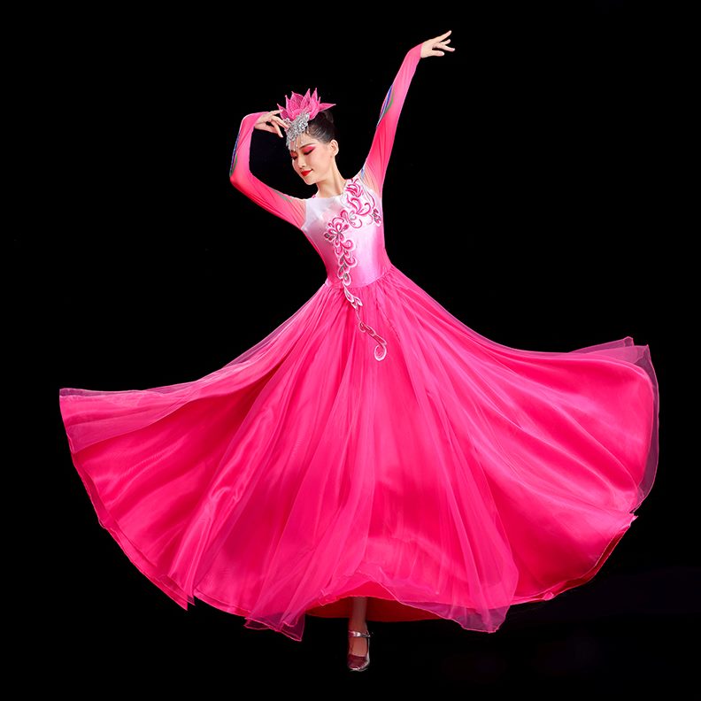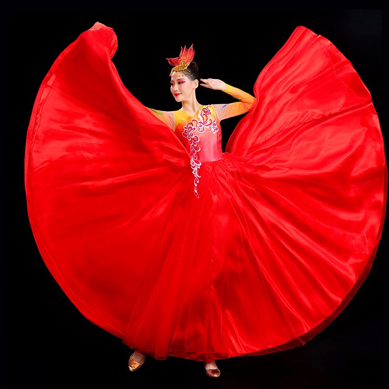 伴大气新款女歌型演出服表飘逸开场舞舞蹈服大摆裙大合唱长裙现代