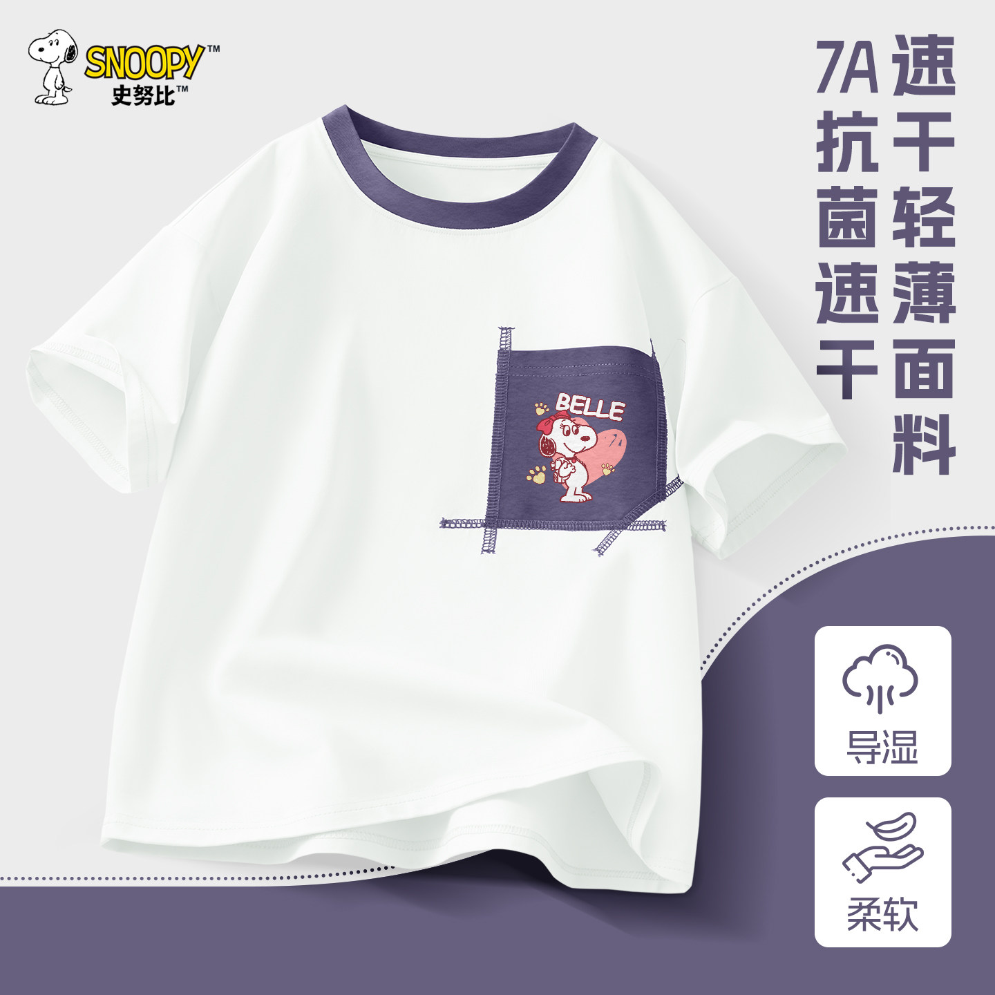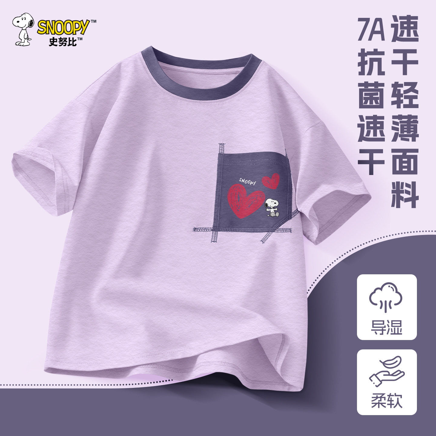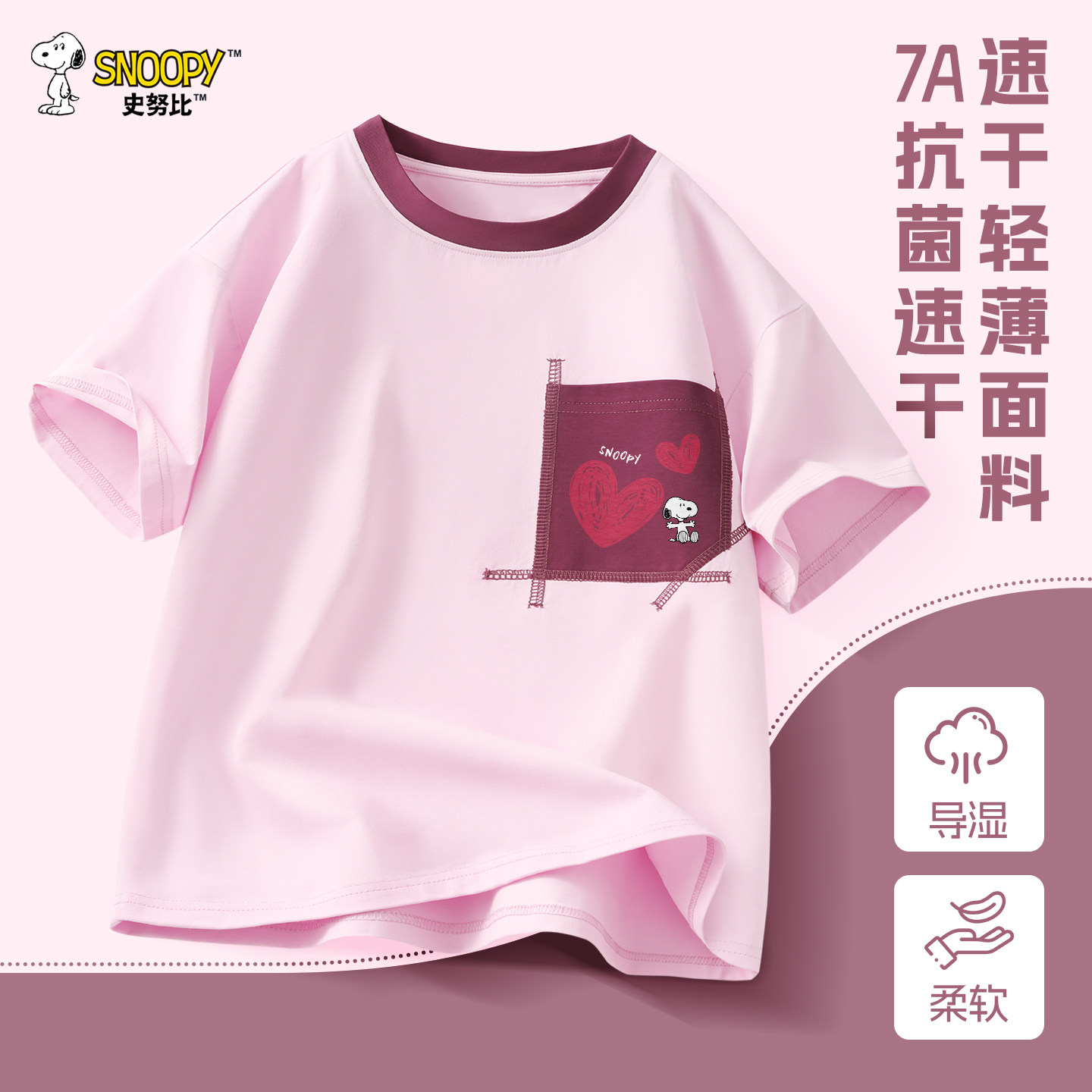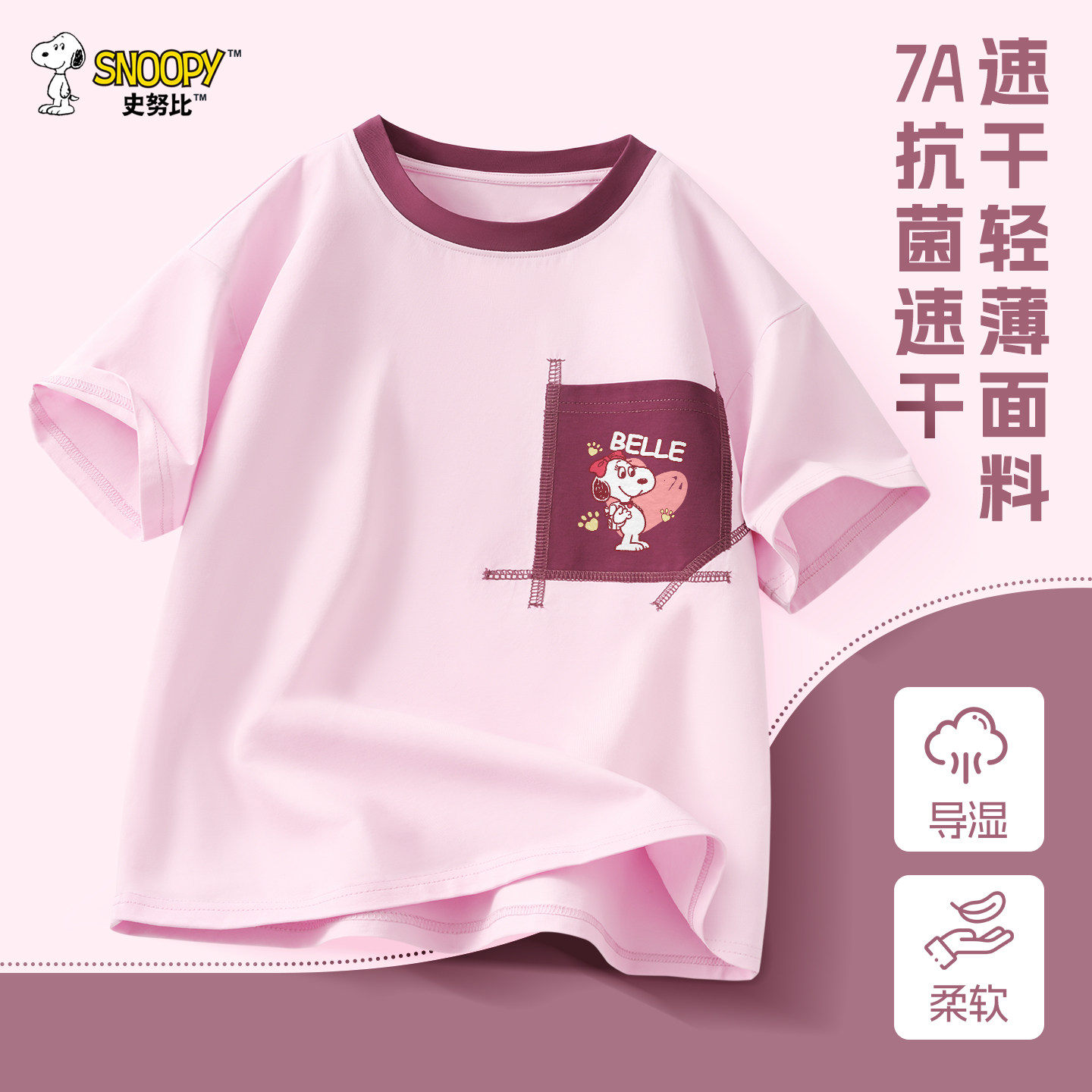 史努比夏季女童休闲百搭衣服轻薄短袖T恤儿童速干轻薄防晒上衣装