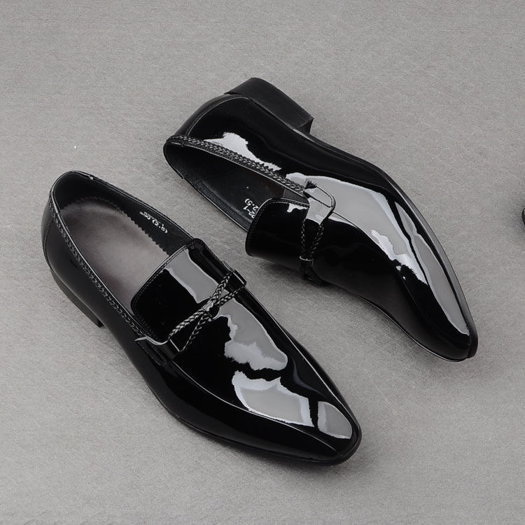 春季皮鞋男士英伦韩版尖头漆皮潮鞋商务休闲一脚蹬鞋亮面真皮鞋子