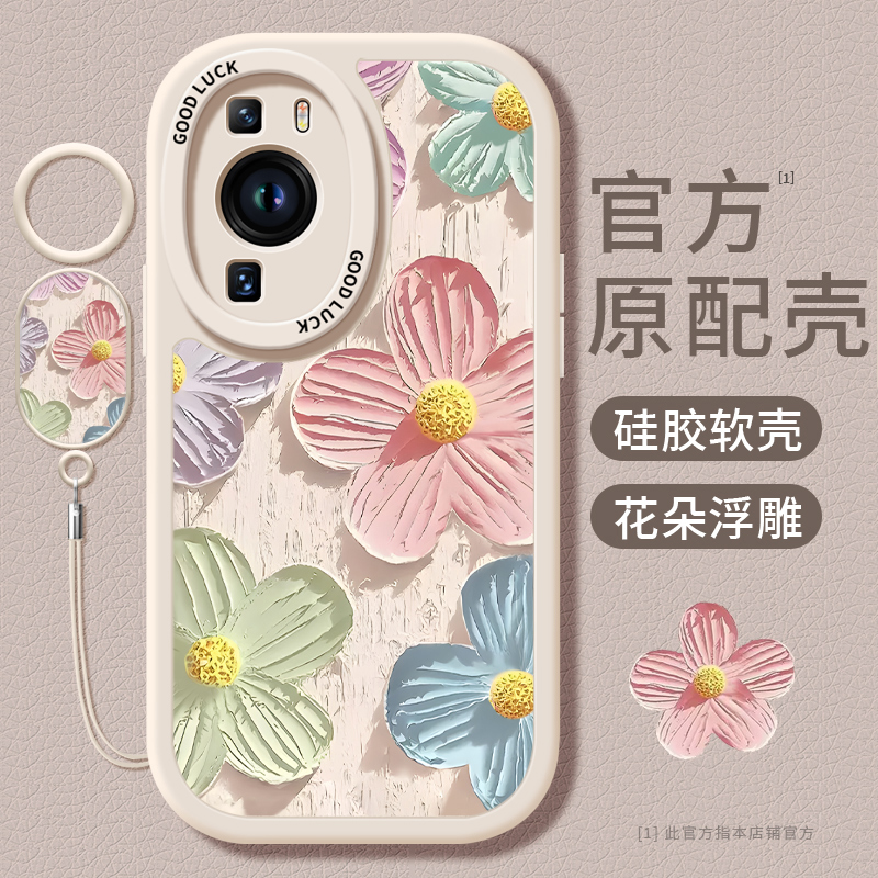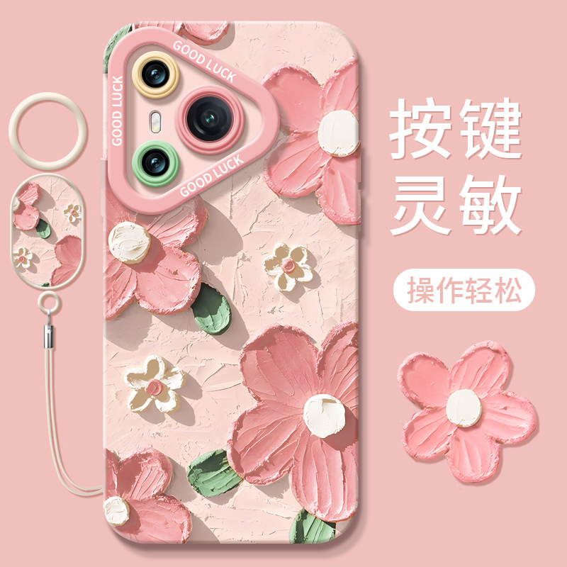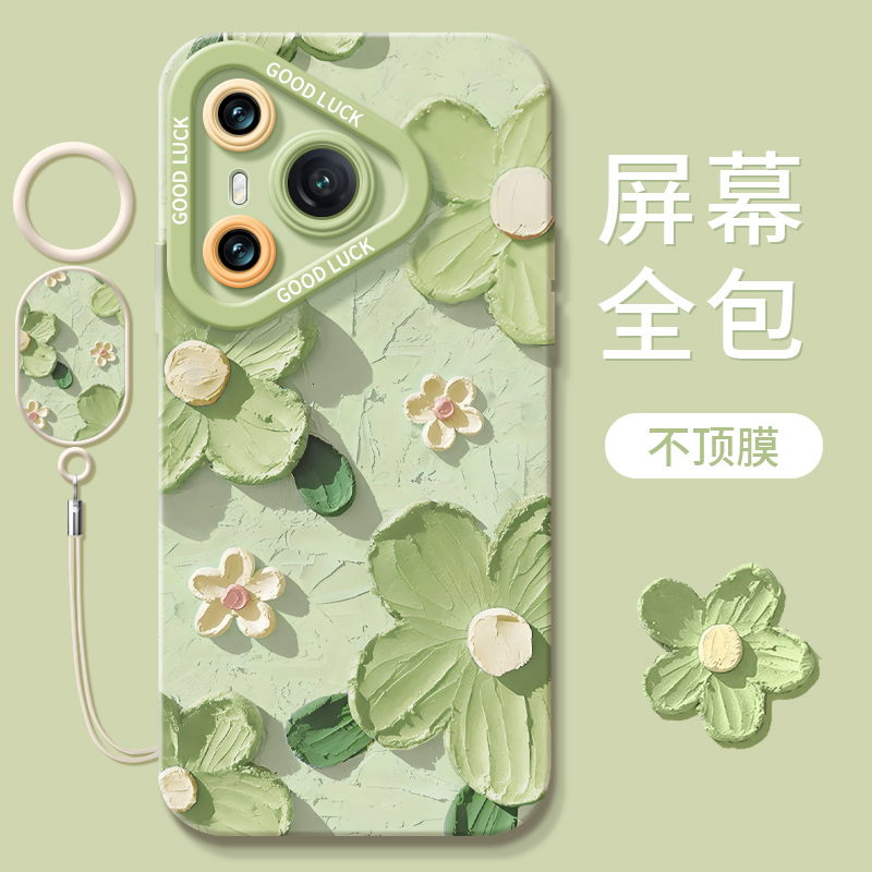 油画花朵适用华为Pura70pro手机壳P70液态硅胶新款pura70套pro+全包镜头por防摔p7o新品ultra女pure系列pr0