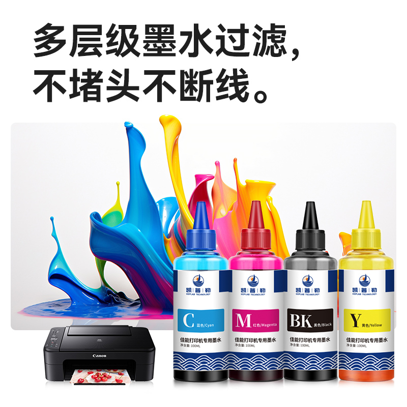 适用佳能TS3380 TS3480喷墨打印机墨水845 846 840 841喷墨连供墨盒专用黑彩色墨水TS3180四色填充通用墨汁
