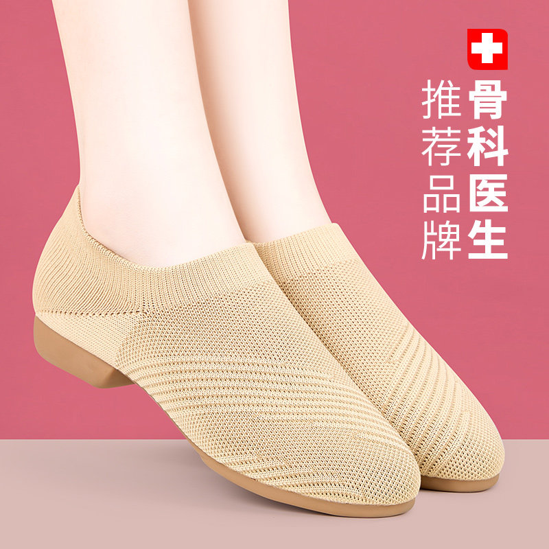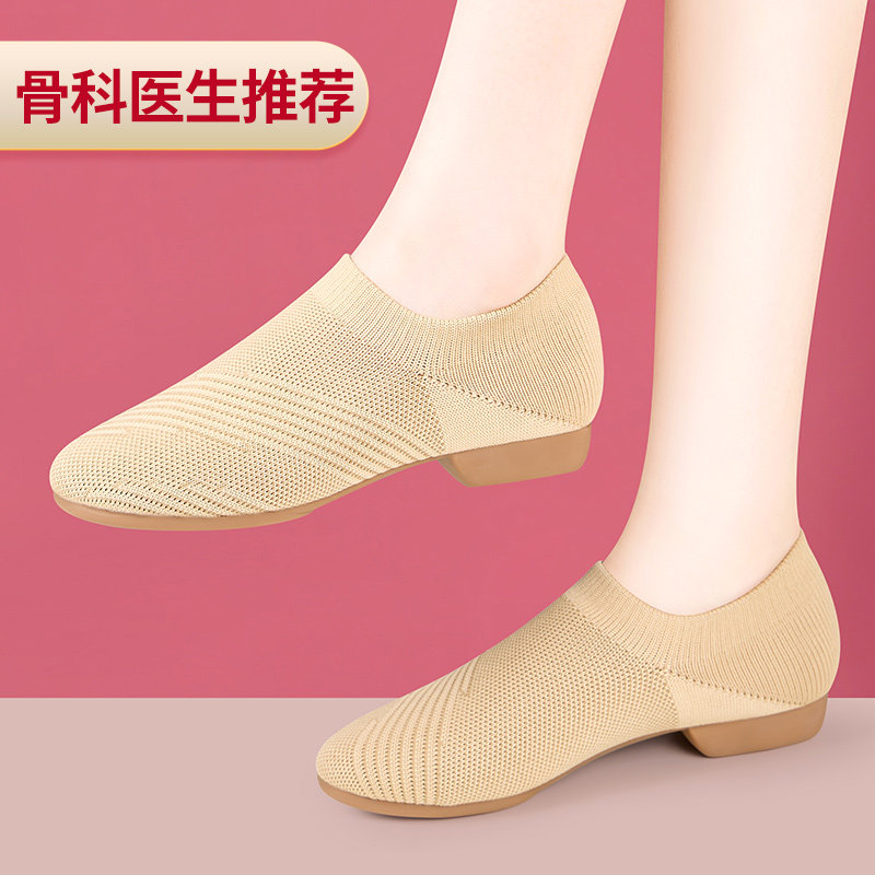 汉宫主新款舞蹈鞋飞织布古典练功鞋室外跳舞广场舞鞋低跟教室鞋
