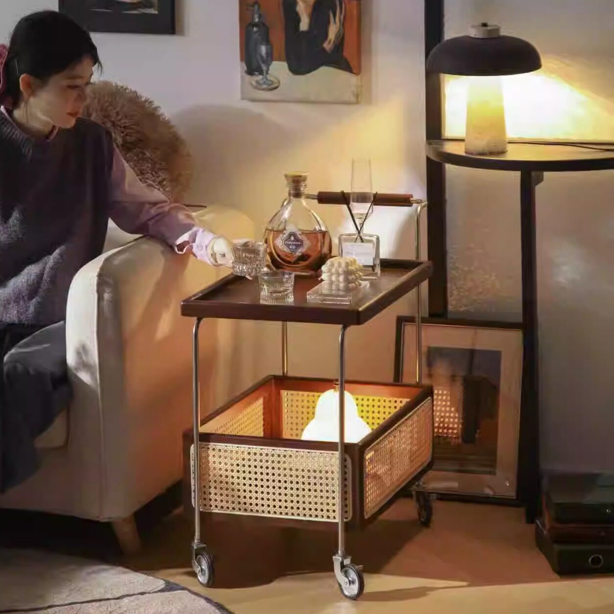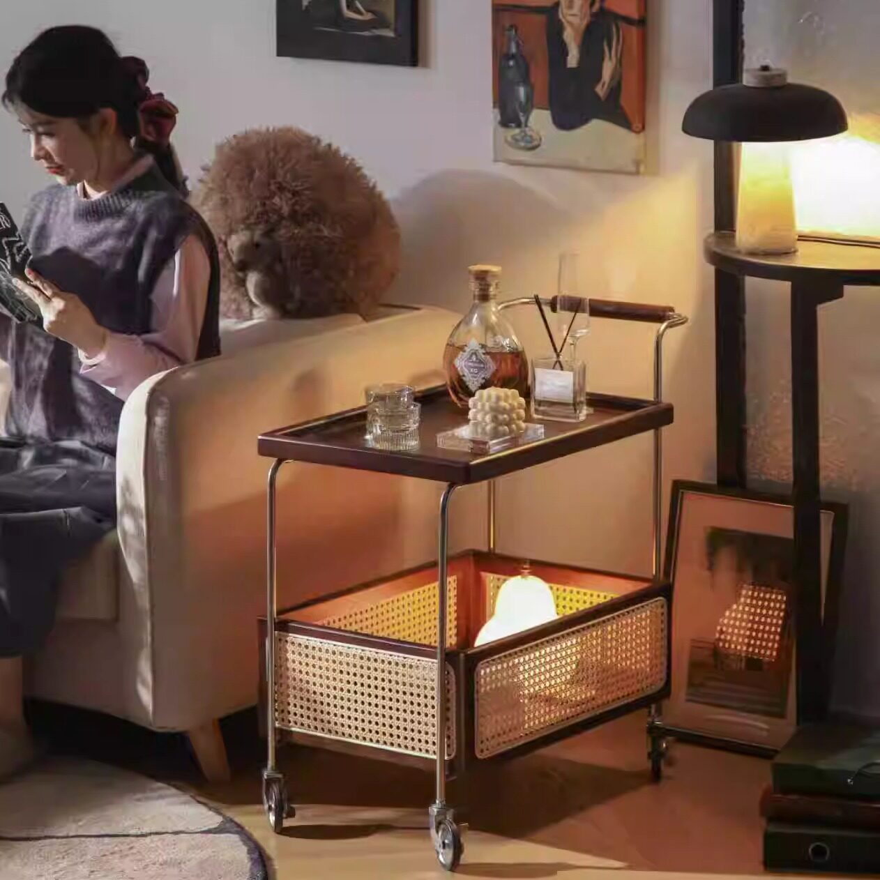 实木移动小推车客厅沙发边茶几床头柜置物收纳架中复古风零食法式