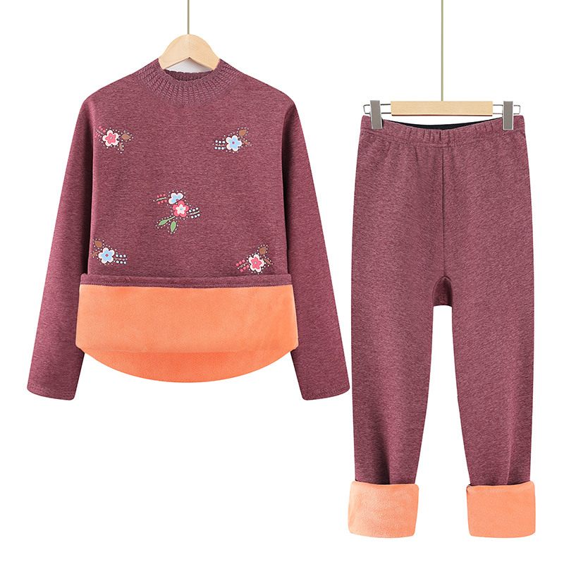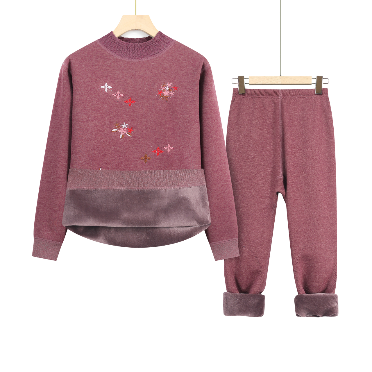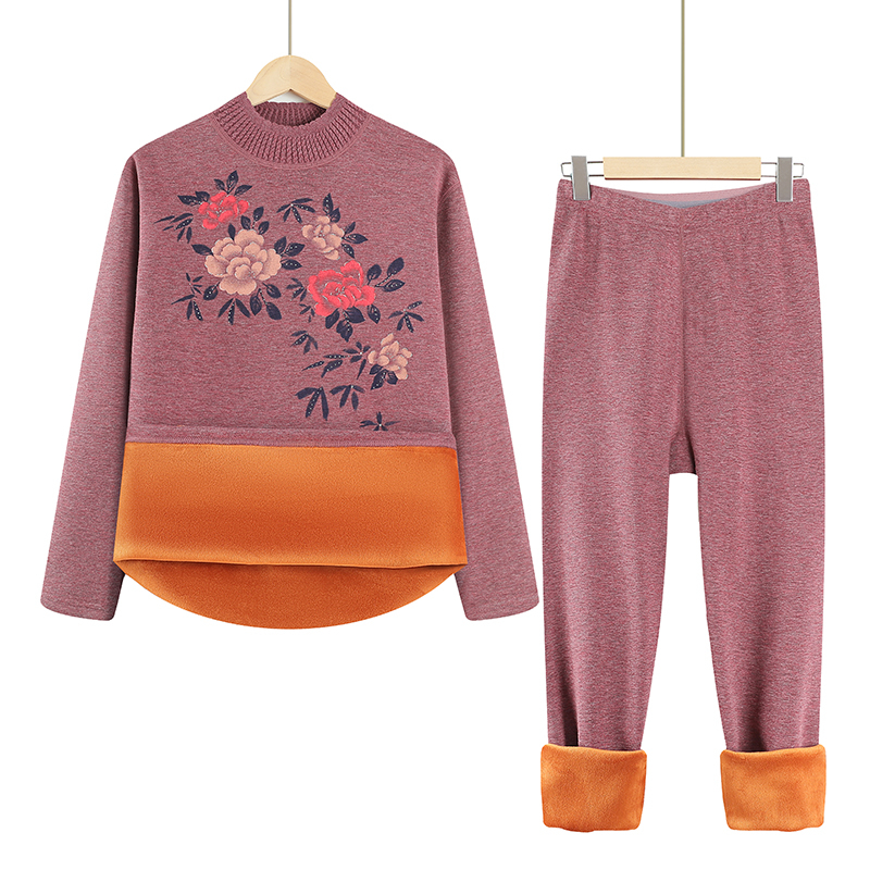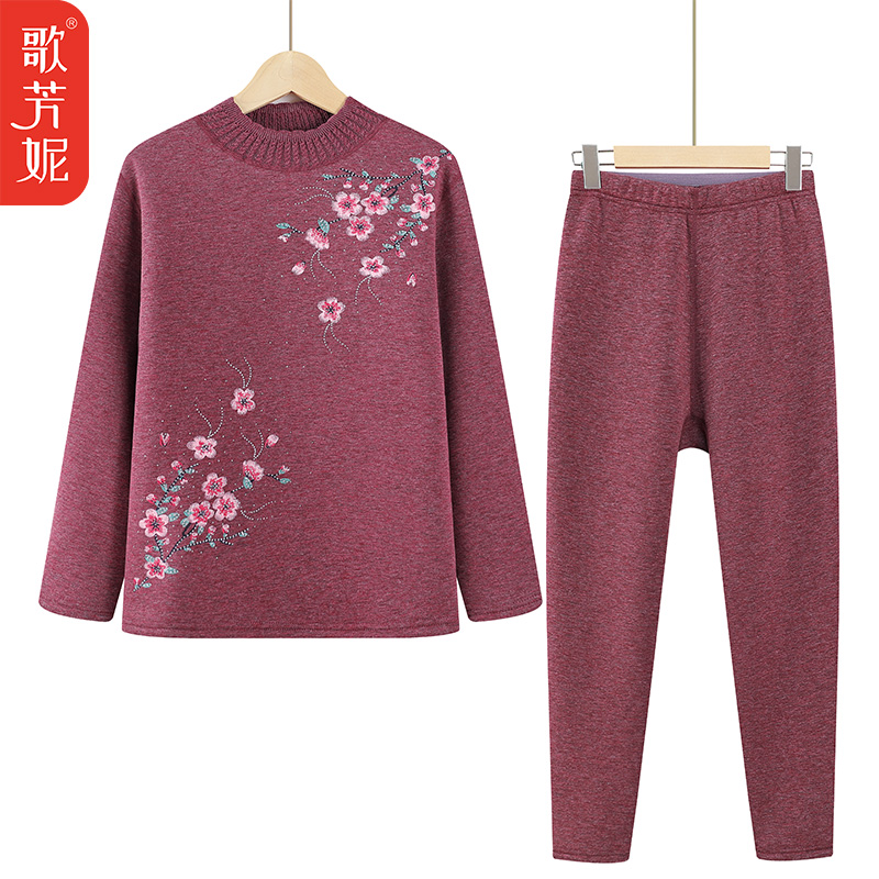 妈妈装加绒加厚保暖内衣两件套装中老年女装打底衫秋衣裤奶奶装冬