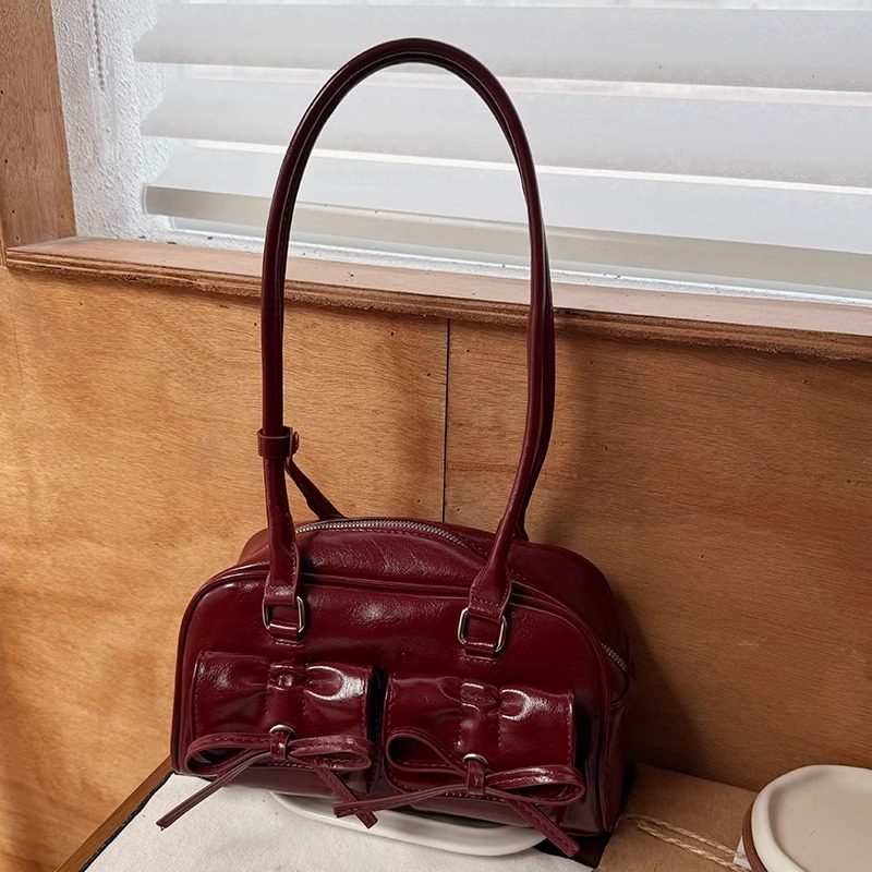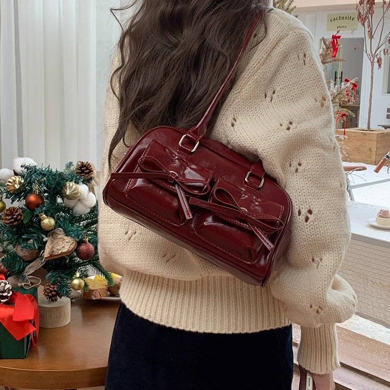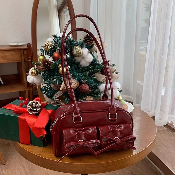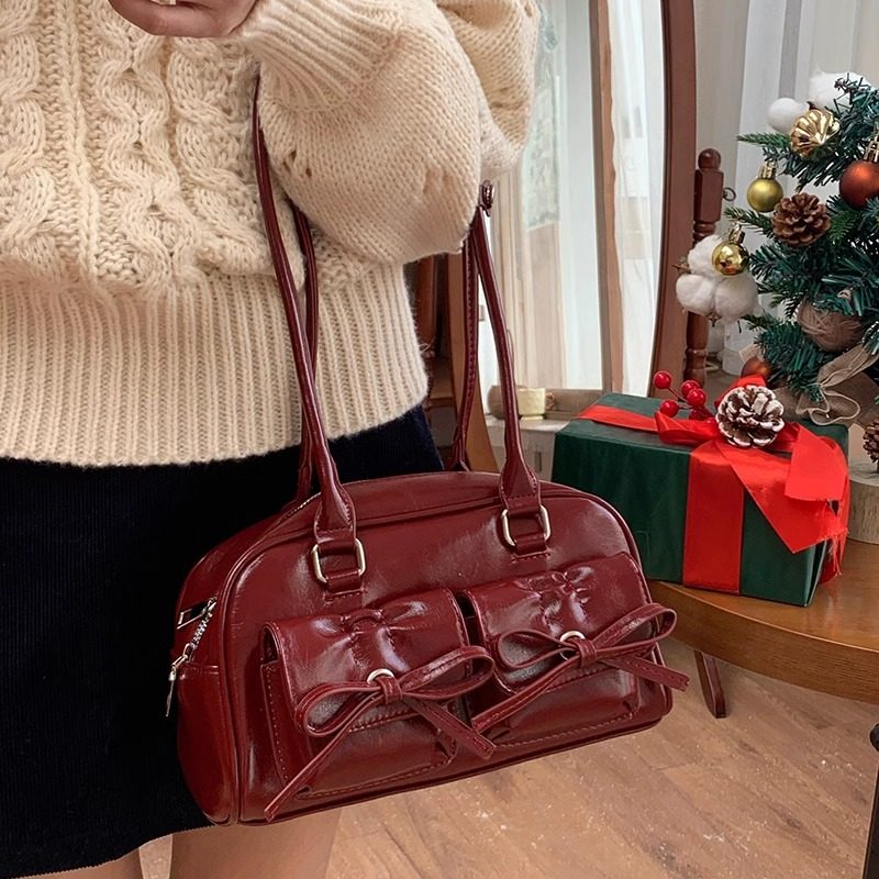 圣诞节蝴蝶结单肩腋下包包女新款手提枕头包保龄球包时尚通勤包包
