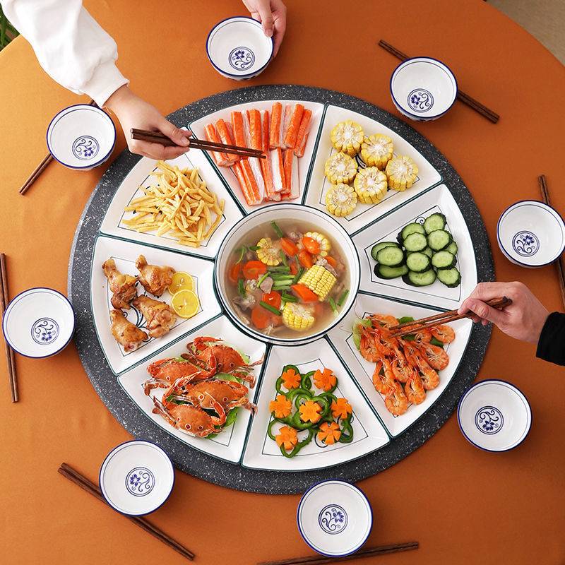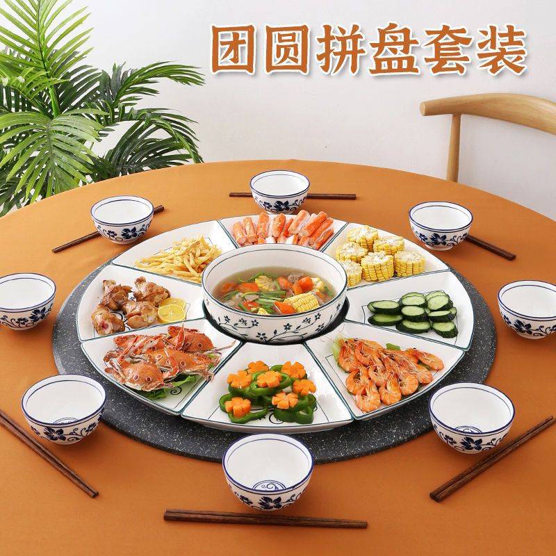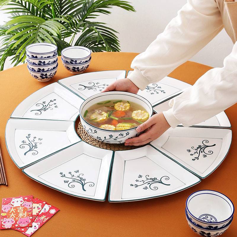高颜值陶瓷扇形拼盘餐具组合盘子家用创意釉下彩聚会碗碟拼接套装