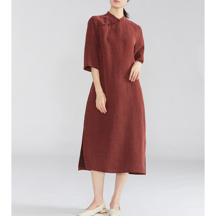 一丝牵 老料红龟 真丝香云纱龟裂纹连衣裙100桑蚕丝旗袍裙2026春