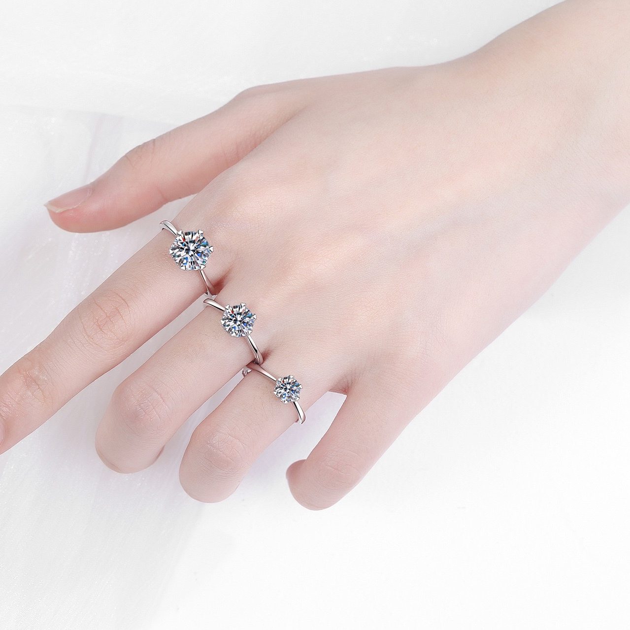 正品莫桑石钻戒六爪s925戒指情侣求婚结婚表白生日礼物送女友
