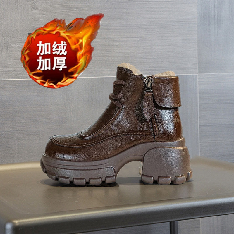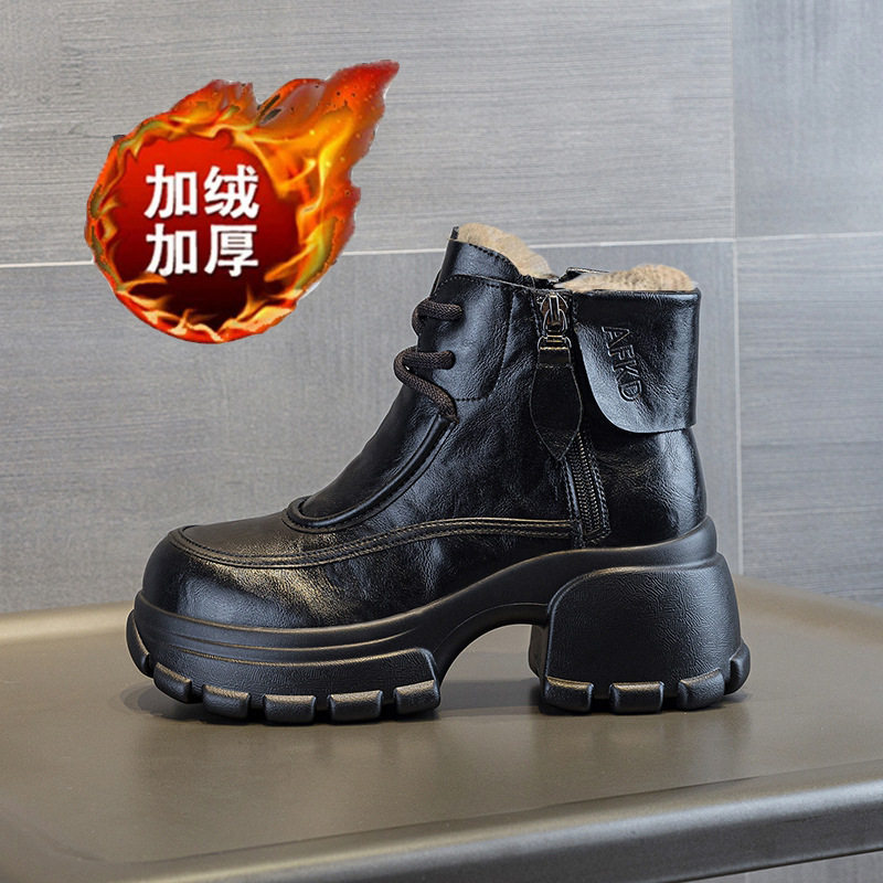 真皮马丁靴女款2025新款秋季冬加绒棉鞋厚底小个子增高雪地短靴子