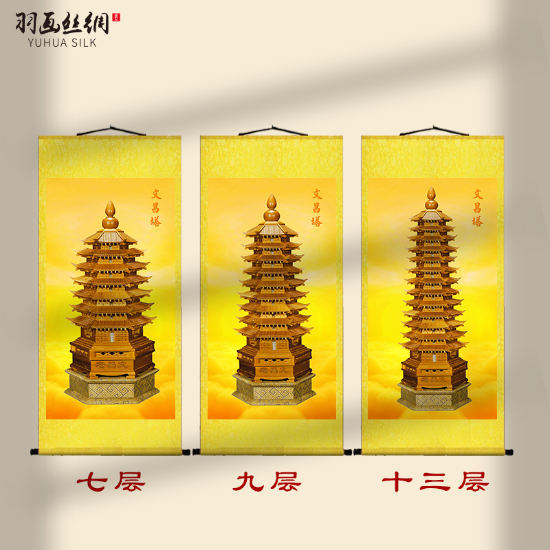 文昌塔挂画文昌帝君画像办公室书房宝塔十三层文昌塔装饰卷轴壁画