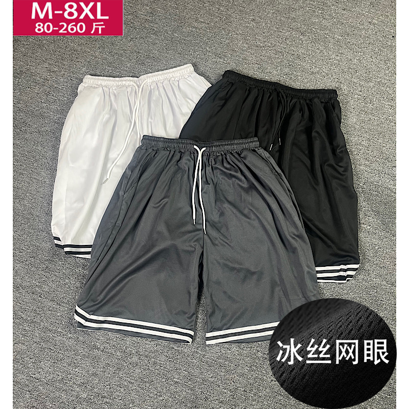 大码弹力冰丝短裤男夏季薄款速干加肥加大宽松裤子网眼运动五分裤