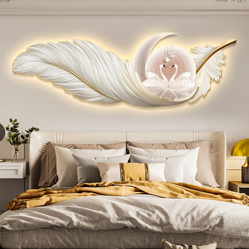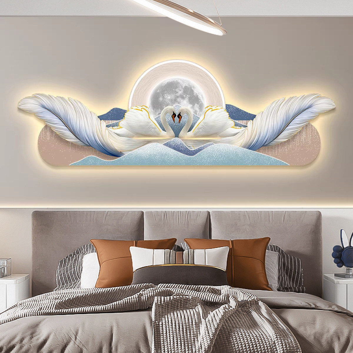 轻奢led带灯卧室床头装饰画主卧房间挂画壁画简约现代天鹅高级感