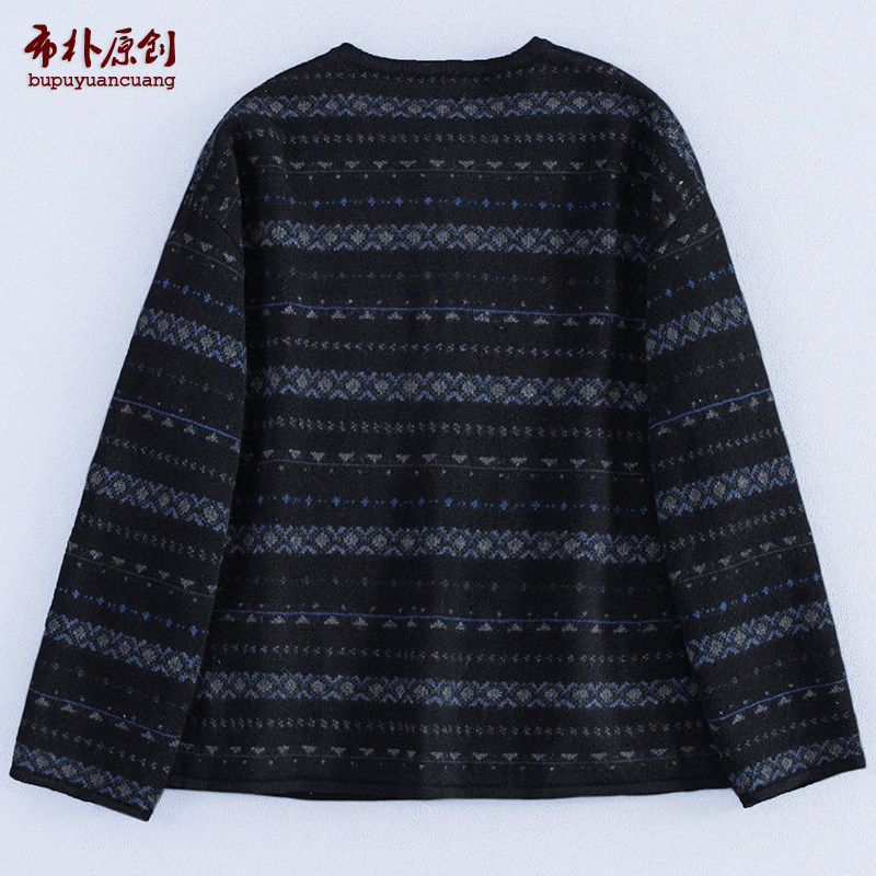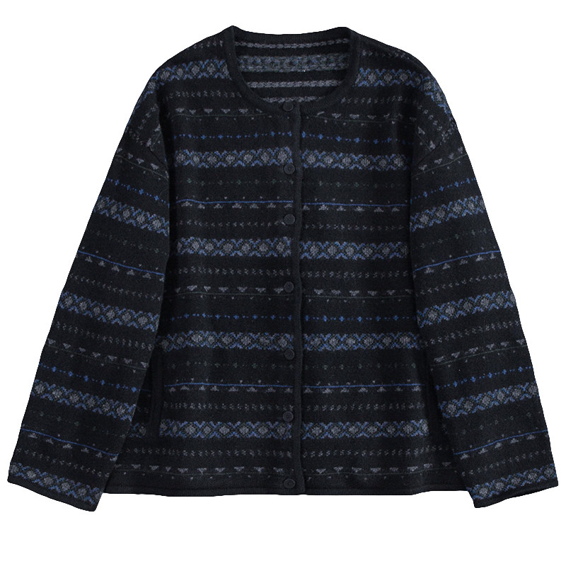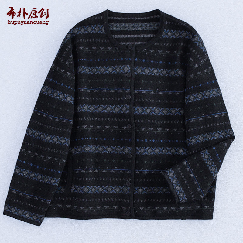 布朴家作2025秋冬新款文艺复古碎提花黑色开襟宽松羊毛毛衣女开衫
