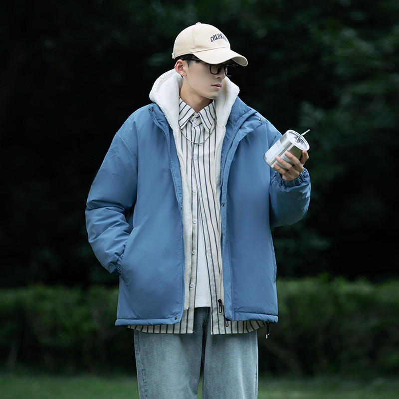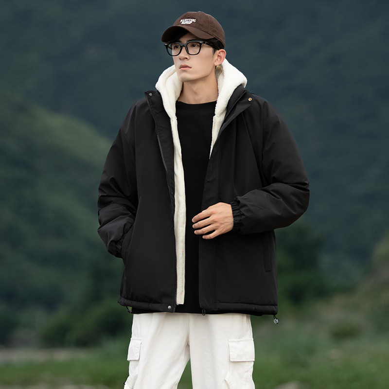 VF真维斯男装2025冬季新款潮牌时尚百搭假两件宽松摇粒绒棉衣