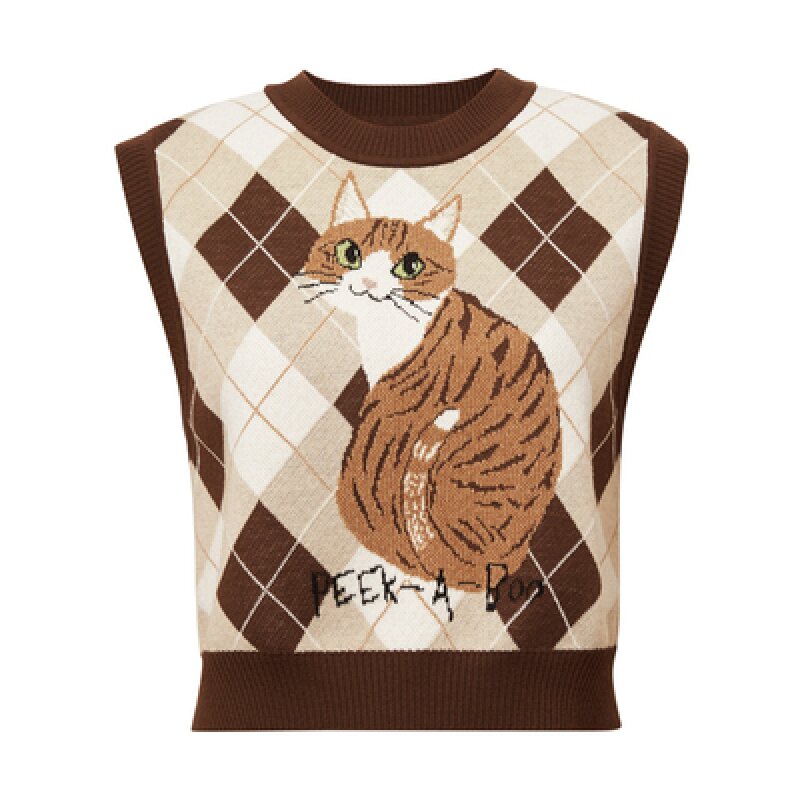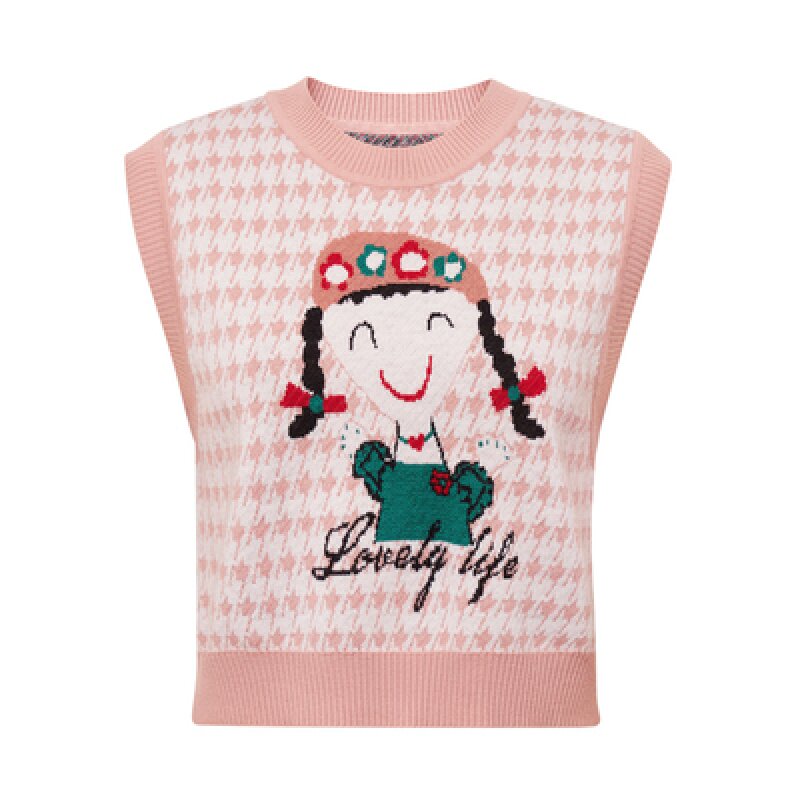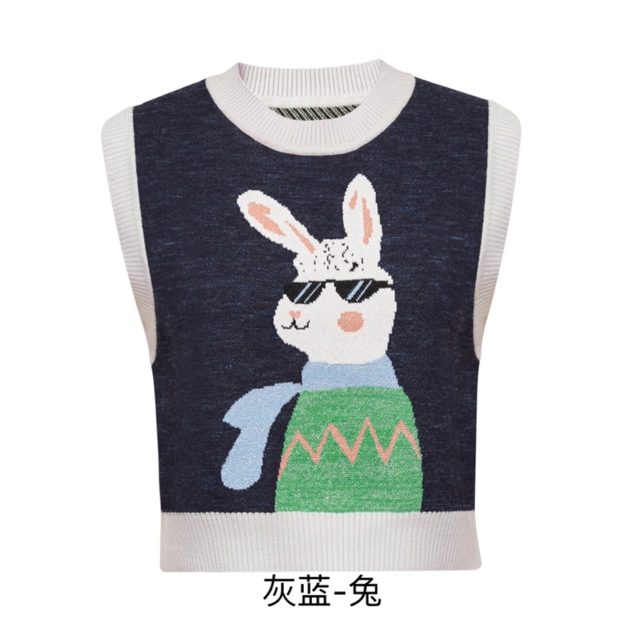 哥家商场同款卡通提花羊毛针织马甲背心2025秋冬叠穿毛衣A301023