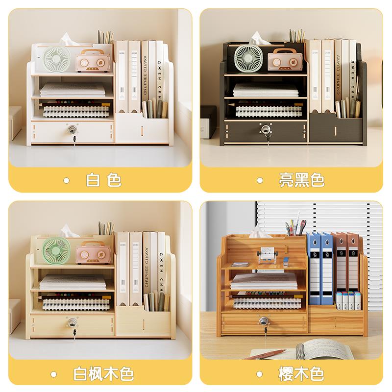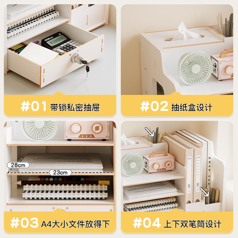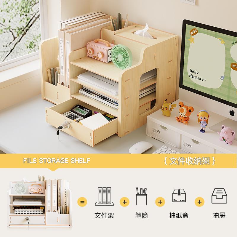 创意桌面收纳盒办公桌置物架工位书桌装饰摆件一体笔筒文件收纳架