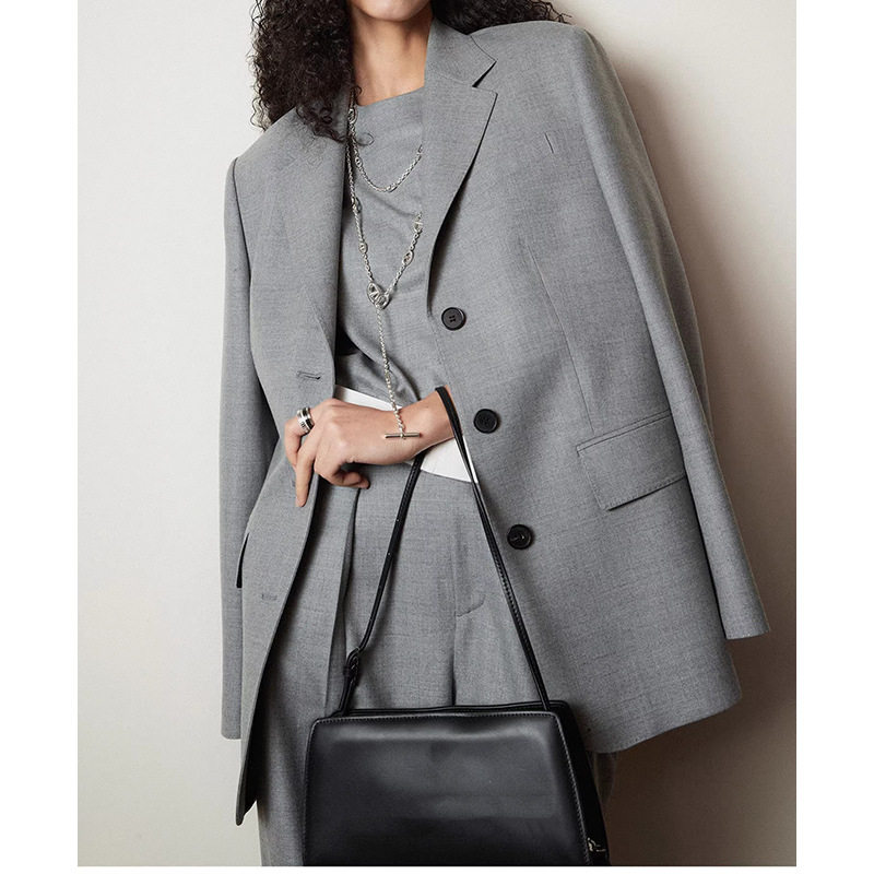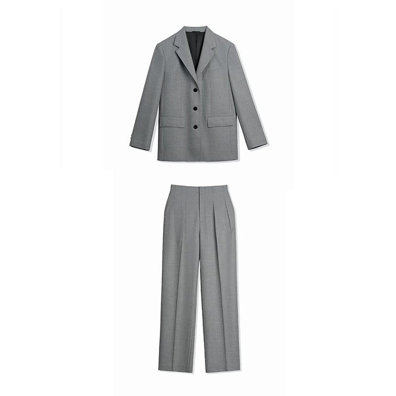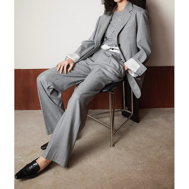 现货厂家 2025新款 都市雅痞敲细羊毛直筒裤西装外套纯色女