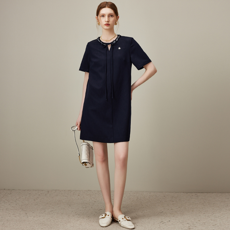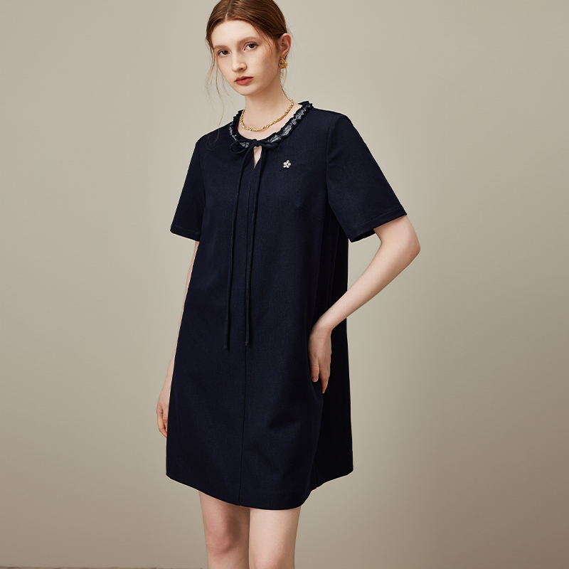 dfvc减龄牛仔连衣裙系带领小个子