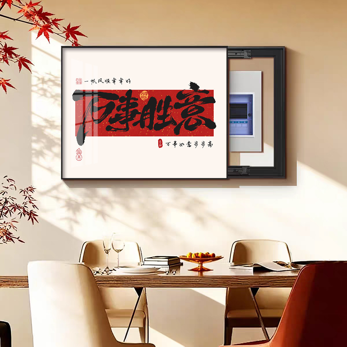 新中式电表箱装饰画2026年新款配电箱遮挡挂画马上有钱弱电源盖板