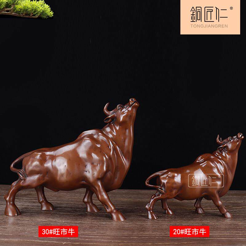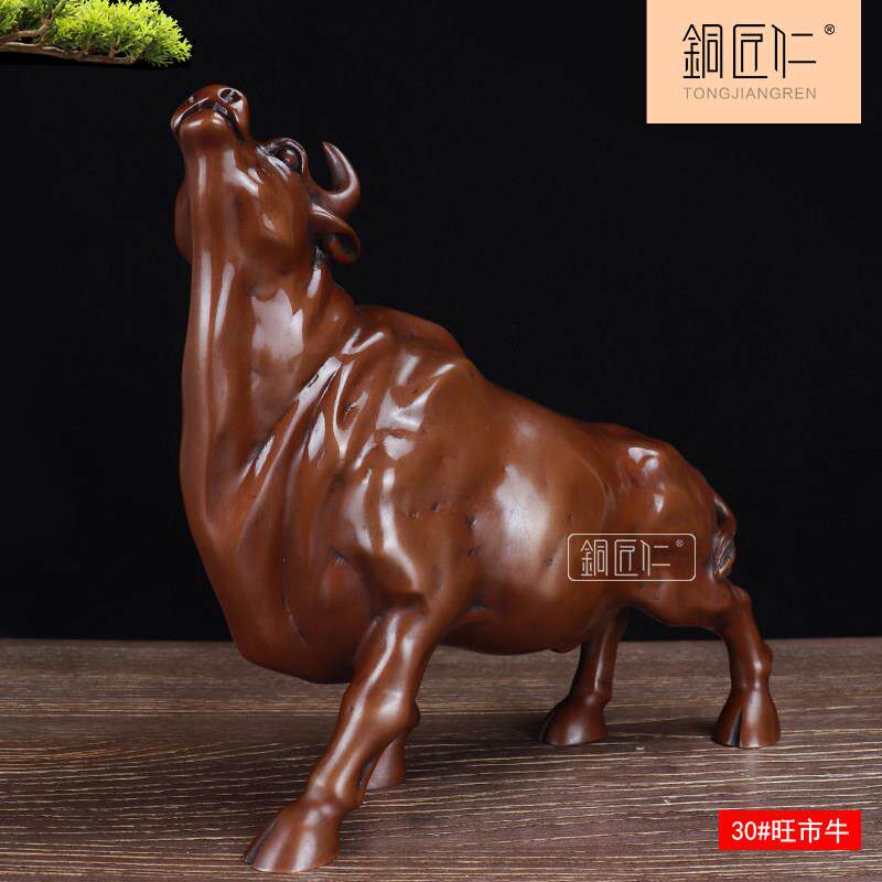铜匠仁 紫铜孺子牛旺市桌面铜器摆设铜生肖牛中式电视柜炒股股市