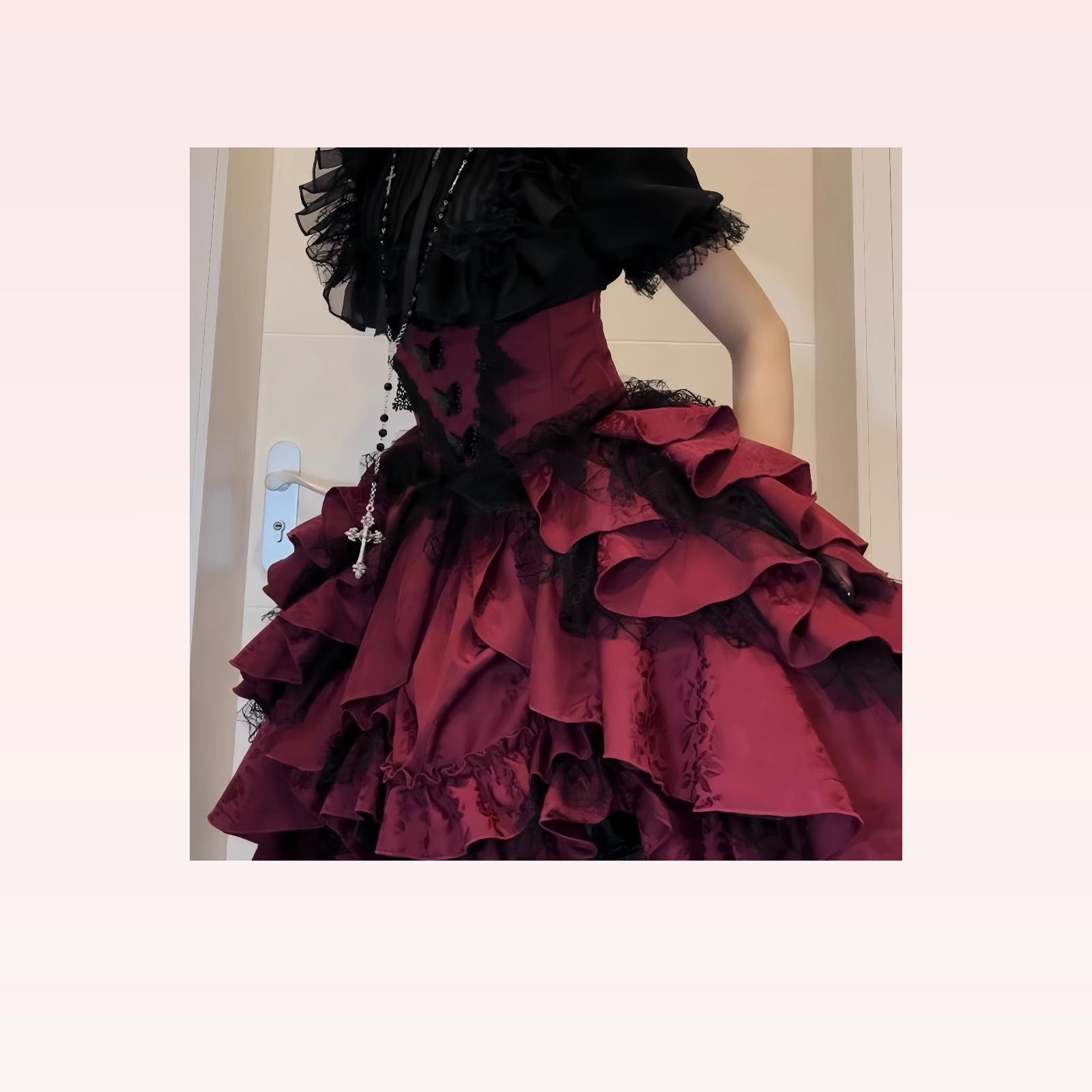 雾隐庄园裙子暗黑哥特吸血鬼伯爵lolita黑红色衬衫提拉裙夜莺少女