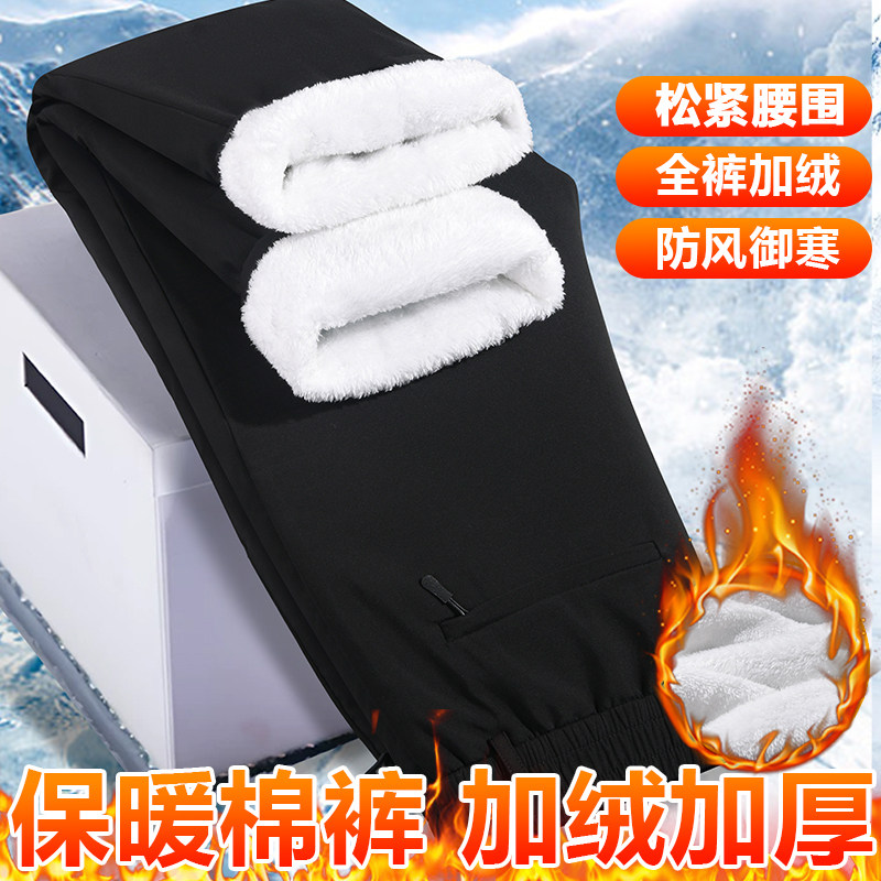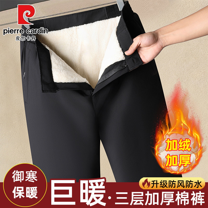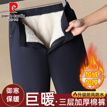 皮尔卡丹男士外穿棉裤冬季加绒加厚保暖宽松休闲裤防风防寒长裤男