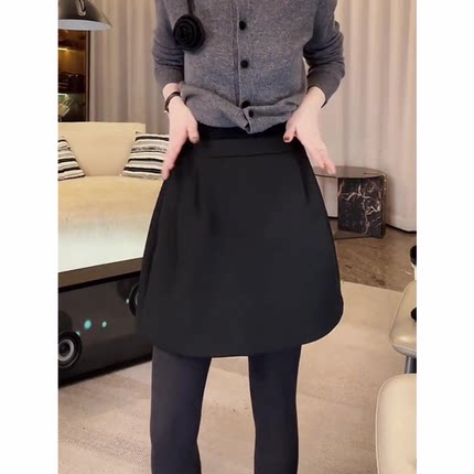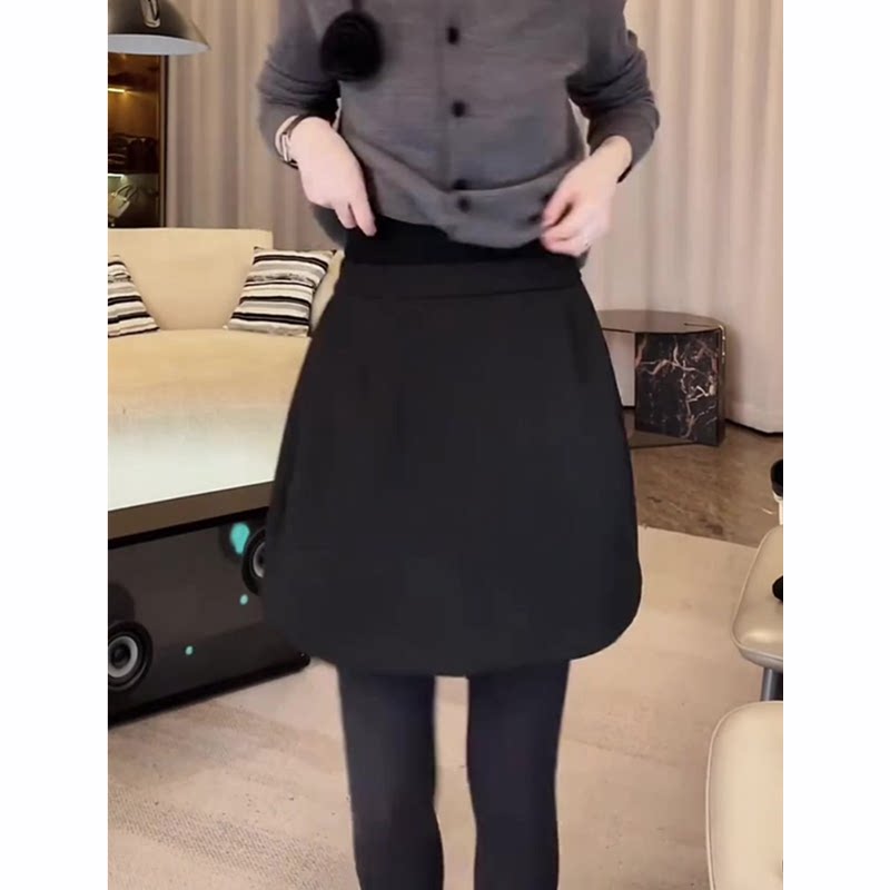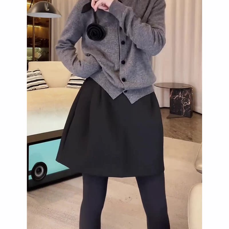 黑色厚款西装花苞短裙女秋季新款高腰显瘦遮肉气质时尚减龄半身裙