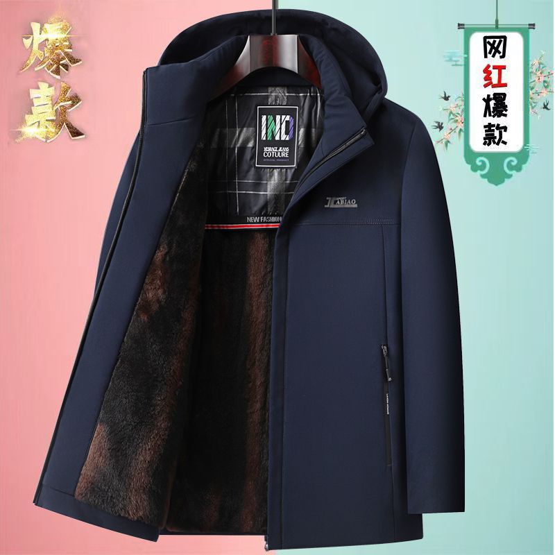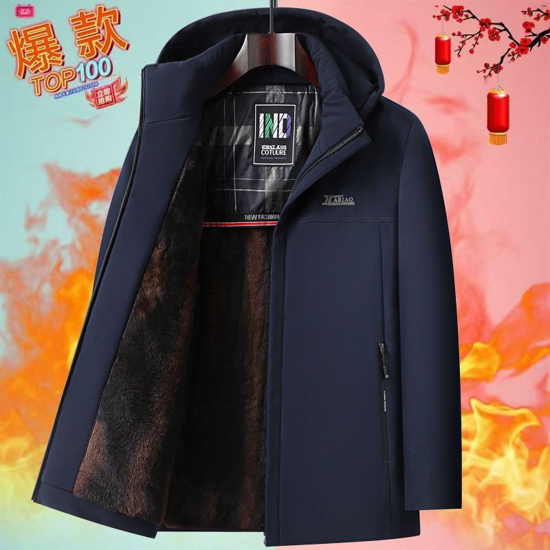 中老年男士加绒加厚冬季派克服男
