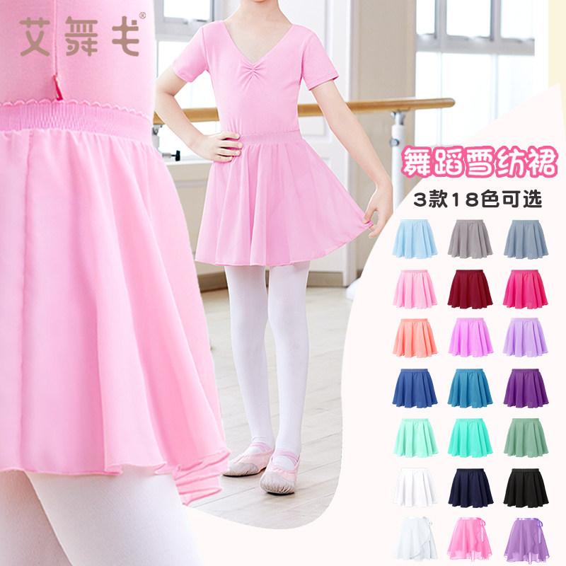 儿童舞蹈半身裙女童跳舞练功专用雪纺短裙芭蕾舞服一片式纱裙围裙