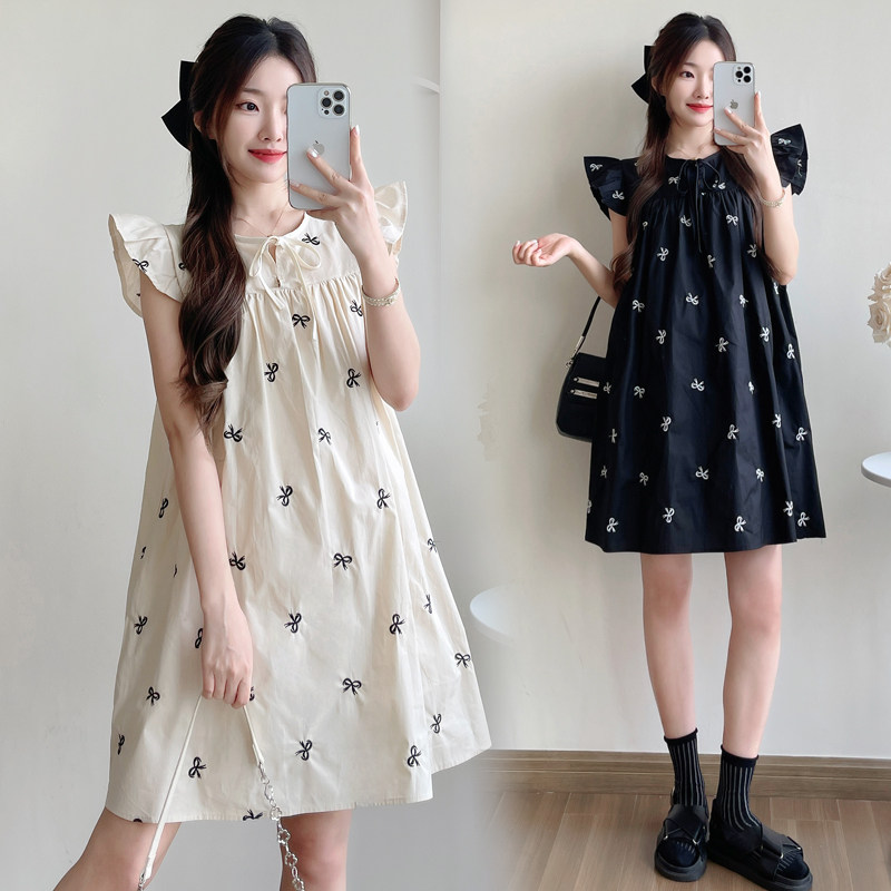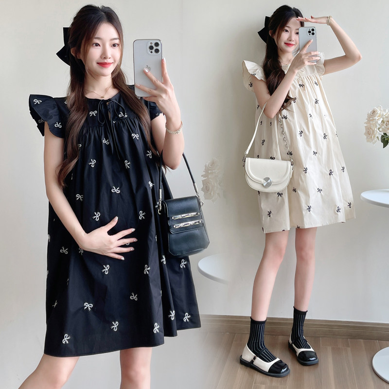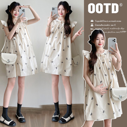 孕妇装夏装时尚小香风刺绣无袖连衣裙夏季背心裙宽松裙子夏孕妇裙