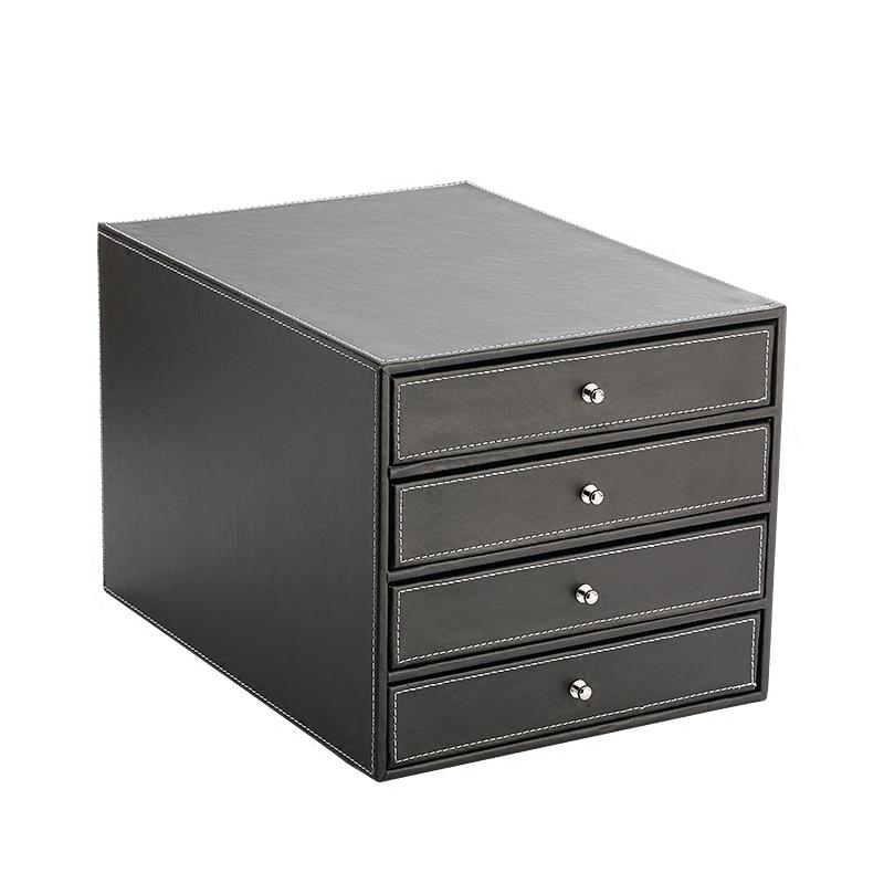 皮质文件收纳柜带抽屉简约抽屉式整理盒办公档案架资料可移动黑色