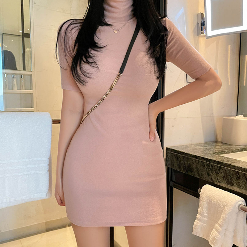 气质纯欲风半袖高领连衣裙秋冬紧身性感内搭打底t恤包臀裙女