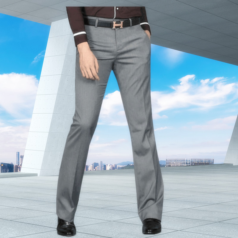 韩版喇叭裤男修身直筒商务坠感阔腿西裤英伦男士休闲藏青色西装裤