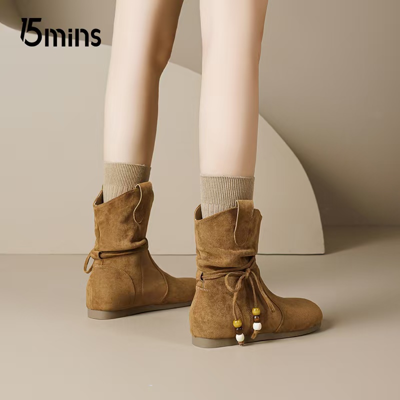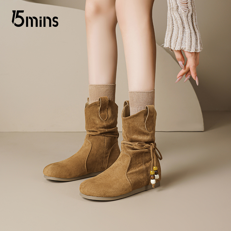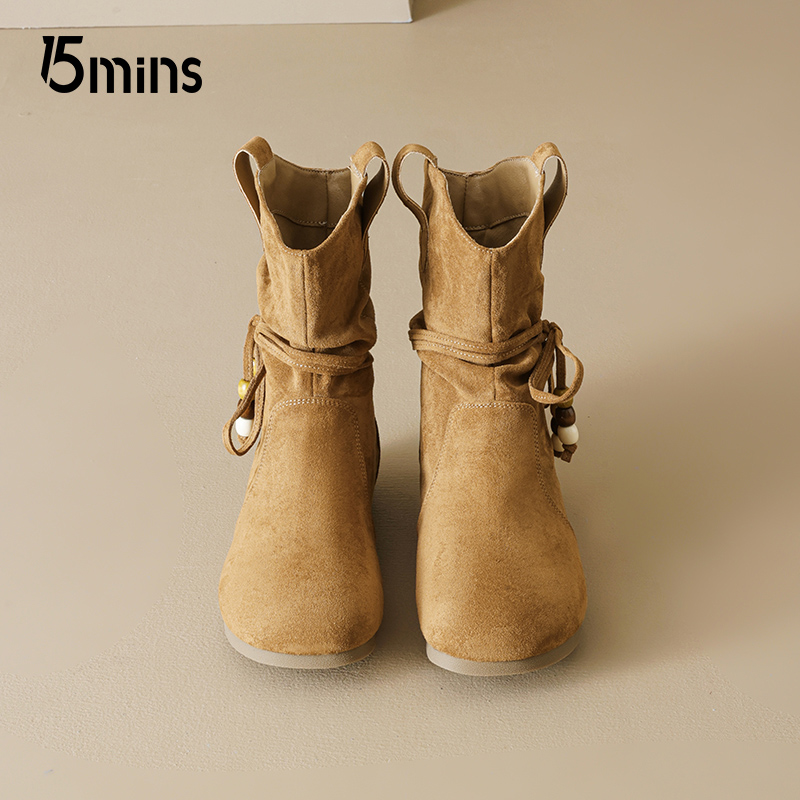 15mins堆堆短靴女2025新款秋季美拉德复古勃肯靴中筒西部牛仔靴子