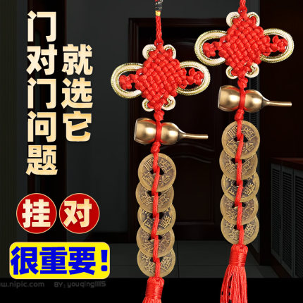 五帝钱中国吉祥结门对门挂件铜葫芦铜钱币朱砂入户门口摆饰压门槛