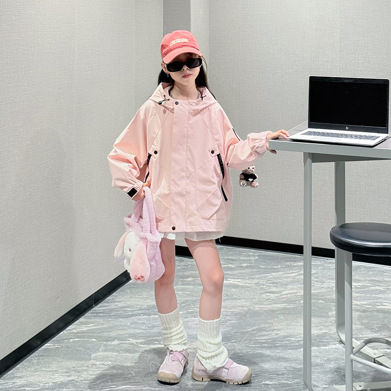 女童冲锋衣外套春秋款2025新款洋气女大童休闲秋季女孩连帽上衣潮