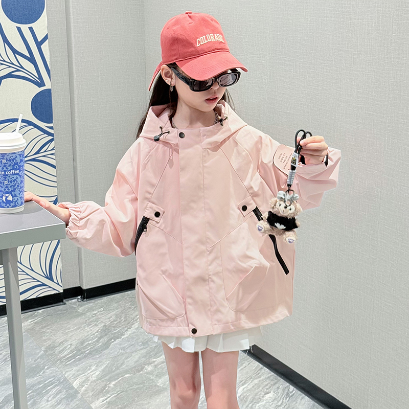 女童冲锋衣外套春秋款连帽上衣潮