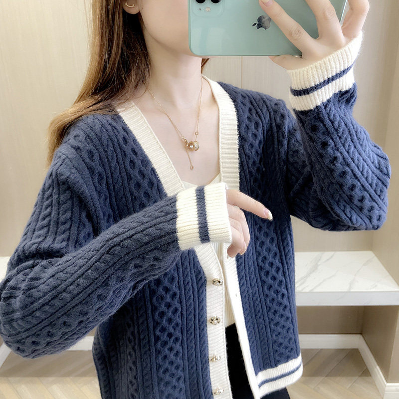 春秋季新款短款上衣洋气针织衫开衫女士宽松毛衣外套春秋小外搭