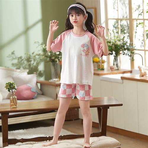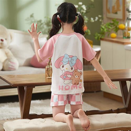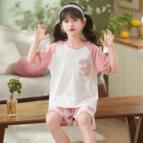2024新款女童睡衣夏季短袖薄款纯棉儿童小女孩公主家居服套装夏款